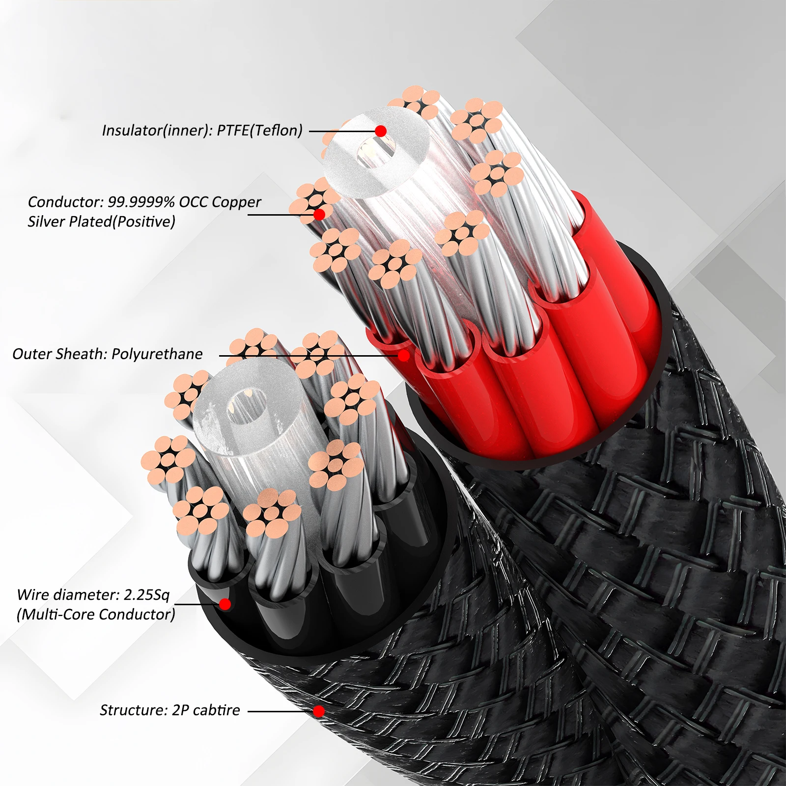 - Constructed with OCC 99.9999% pure silver-plated copper, offering high conductivity and reduced signal loss for superior audio clarity.