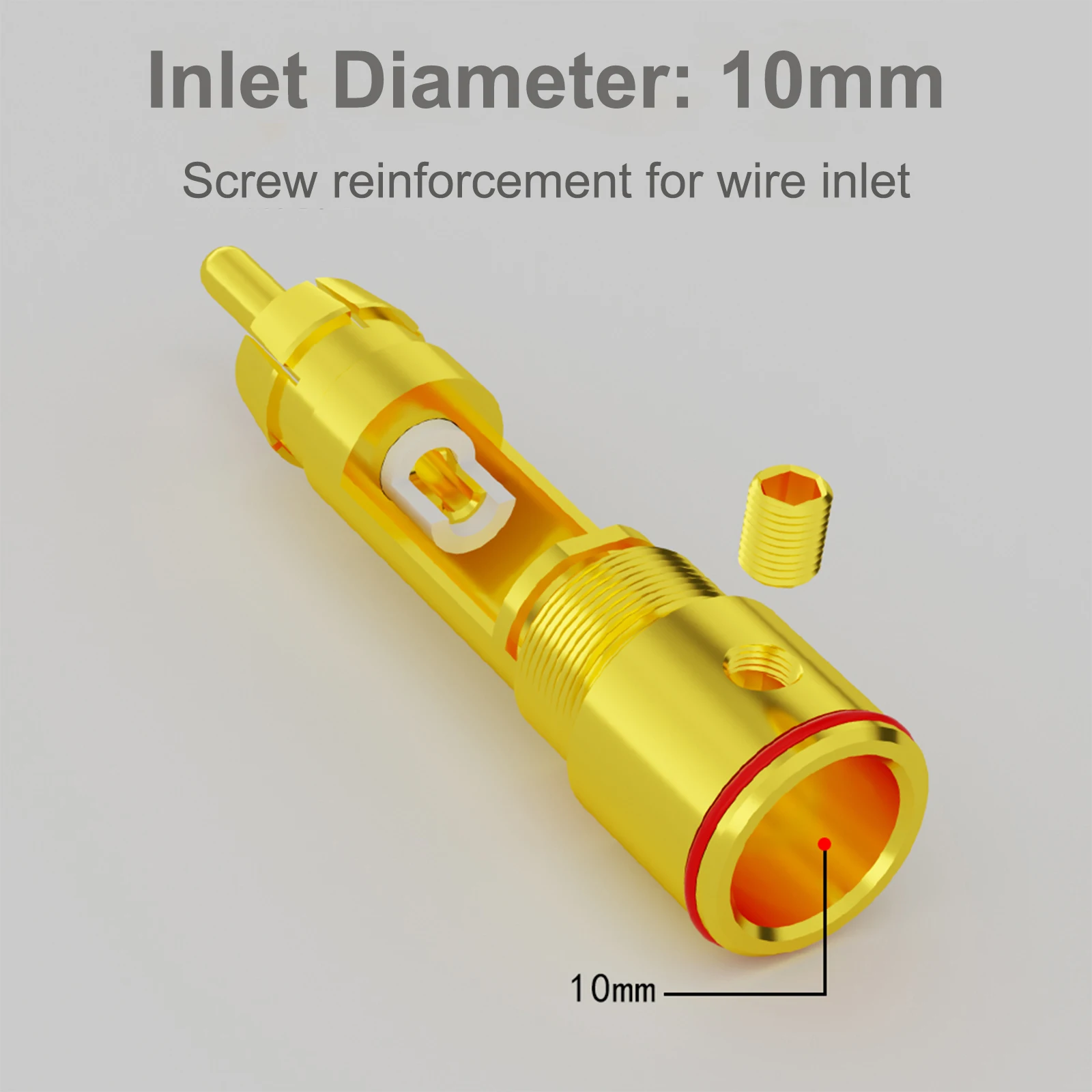 Ensure your audio system performs at its best with this high-quality RCA connector. The combination of premium materials, meticulous craftsmanship, and reliable connection technology guarantees a significant upgrade in sound clarity and system reliability. Whether you're building a new high-end setup or fine-tuning your existing system, this connector is designed to meet the demands of serious audiophiles and professionals. Investing in these connectors means enjoying clearer, richer sound with confidence that your connections are secure, durable, and built to last. Don’t wait—enhance your audio experience today!