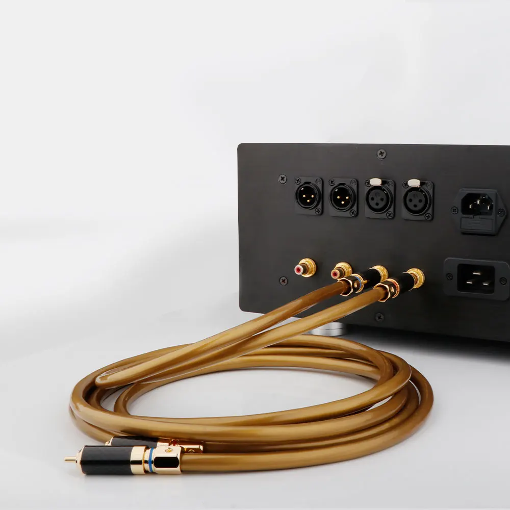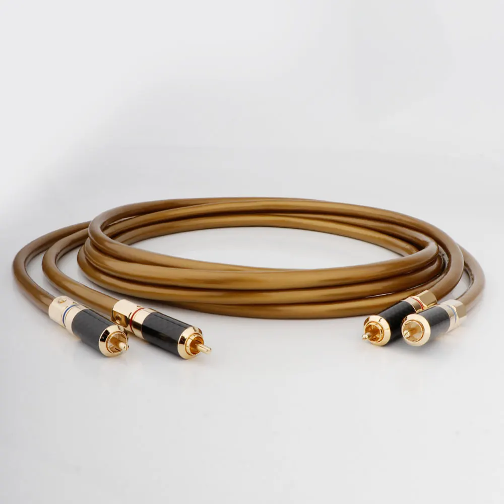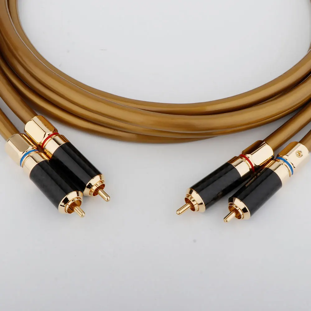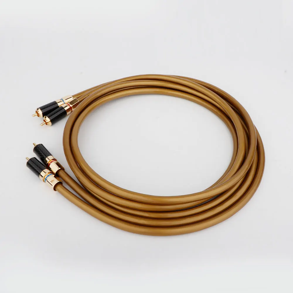 Experience exceptional sound quality with this premium RCA interconnect cable, designed to deliver crisp, clear audio for your high-fidelity systems. Its elegant brownish-orange hue and sleek, uniform design add a touch of sophistication to your setup. The 24k gold-plated carbon fiber shells provide durable, corrosion-resistant connections that ensure optimal signal transfer. Made with 99.99% OFC copper conductors, silver-plated for maximum conductivity, it guarantees a pure audio experience. The cable’s 8mm outer diameter offers flexibility and durability, making installation seamless. Available in multiple lengths—0.5m, 1m, 1.5m, and 2m—this cable is perfect for connecting speakers, DVD players, amplifiers, or multimedia devices. Trust this cable to enhance your listening experience and bring your audio to life.