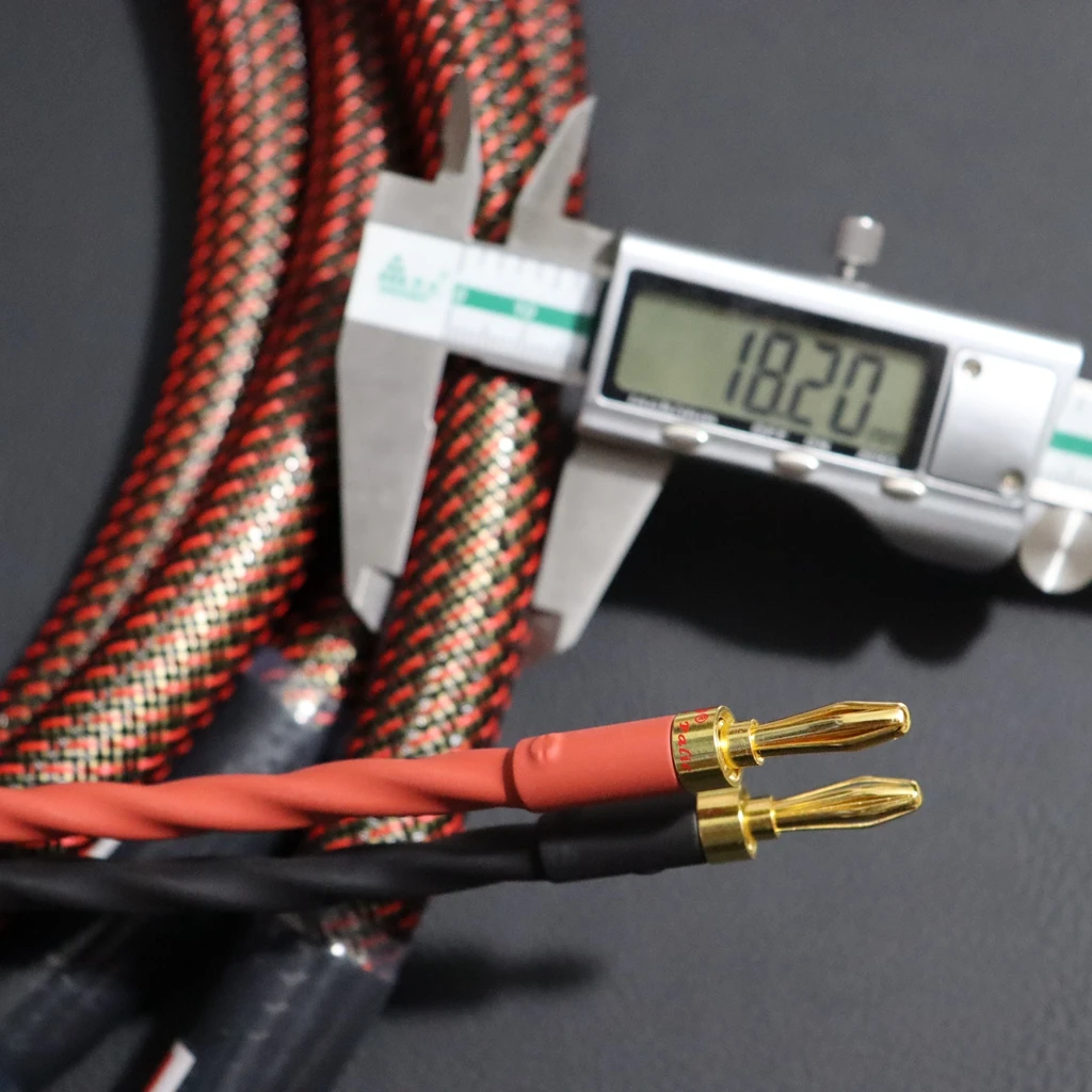 Experience the ultimate in audio clarity and durability with this high-end speaker cable. Crafted with OCC silver-plated conductors in a striking red and black braided pattern, it delivers exceptional sound quality and long-lasting performance. The thick, heavy wires are designed to carry high current efficiently, ensuring your music remains pure and detailed. Enhanced with a unique embedded powerline noise suppression filter, it minimizes electromagnetic and radio frequency interference for crystal-clear audio. The silver-plated copper construction offers an extremely neutral, meticulous, and full-bodied sound that excels in front-stage transparency and accurate positioning. Perfect for audiophiles seeking premium components, this cable transforms your listening experience into an immersive sonic journey. Its rugged design guarantees durability over many years of use.