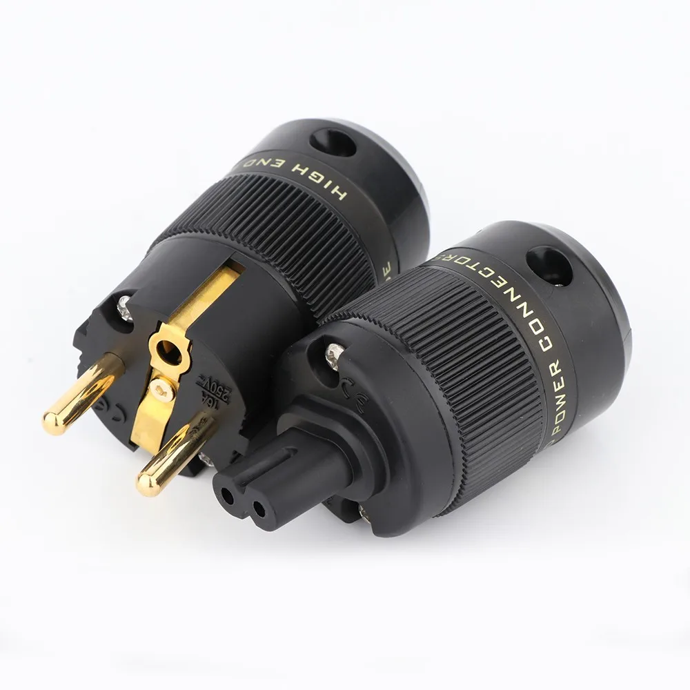 Experience the ultimate in audio and electronic connectivity with this pair of high-quality Rhodium-plated Figure 8 C7 power connectors. Designed for audiophiles and high-end equipment, these connectors boast a sleek, glossy black finish with shiny gold-plated contact points, combining aesthetics with functionality. Made from durable materials including 100% pure copper, nylon/fiberglass front bodies, and polycarbonate shells, they ensure reliable conductivity, heat resistance, and longevity. These connectors accommodate cables ranging from 10mm to 18mm in diameter, making them versatile for various setups. Available in EU and US plug configurations, they provide a secure, stylish connection for your high-performance audio systems or electronic devices, ensuring consistent power delivery and an elegant look.