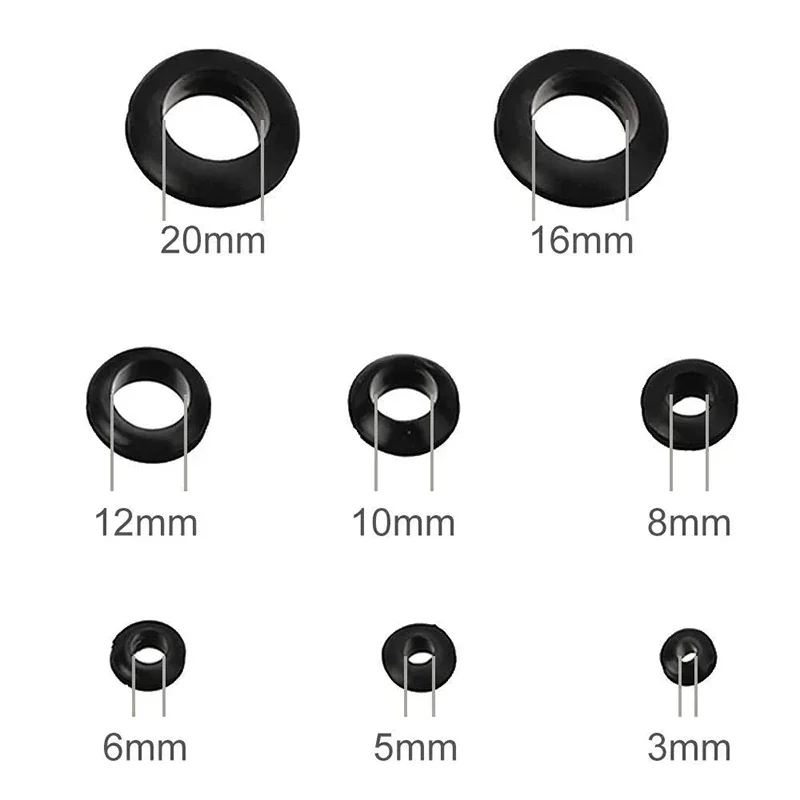 This this set of 200 high-quality rubber seal rings offers excellent durability, flexibility, and insulation, making them perfect for protecting wires and cables passing through metal or chassis. The rings are designed in various sizes, from 3mm to 22mm, and are neatly organized in a transparent plastic box with clear labels for effortless selection. Their sleek, matte black finish provides a professional look, while the assortment’s range ensures compatibility with many different applications, including pipelines, machinery, hydraulic systems, pneumatic repairs, vehicle sealing, and gardening projects. Easy to install, these versatile grommets help maintain safety and integrity wherever they are used, providing long-lasting protection against wear and environmental factors.