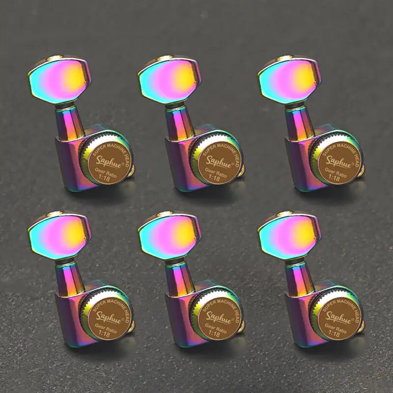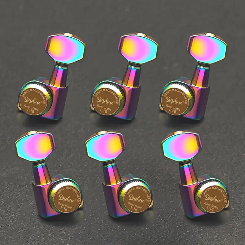 Enhance your guitar’s tuning stability with these premium locking tuners featuring a 1:18 gear ratio, sealed lubrication, heavy-duty internal gears, and durable zinc cast housings. Available in sleek black, luxurious gold, shiny chrome, and vibrant rainbow finishes, each pack includes six tuners with hexagonal handles for precise tuning adjustments. Designed for electric, folk, or acoustic guitars with 6R, 6L, 3R, or 3L configurations, these high-quality machine heads come with mounting hardware—screws, bushings, and washers—for easy installation. Crafted for durability and smooth operation, they ensure your instrument stays perfectly in tune while adding a stylish, modern touch.