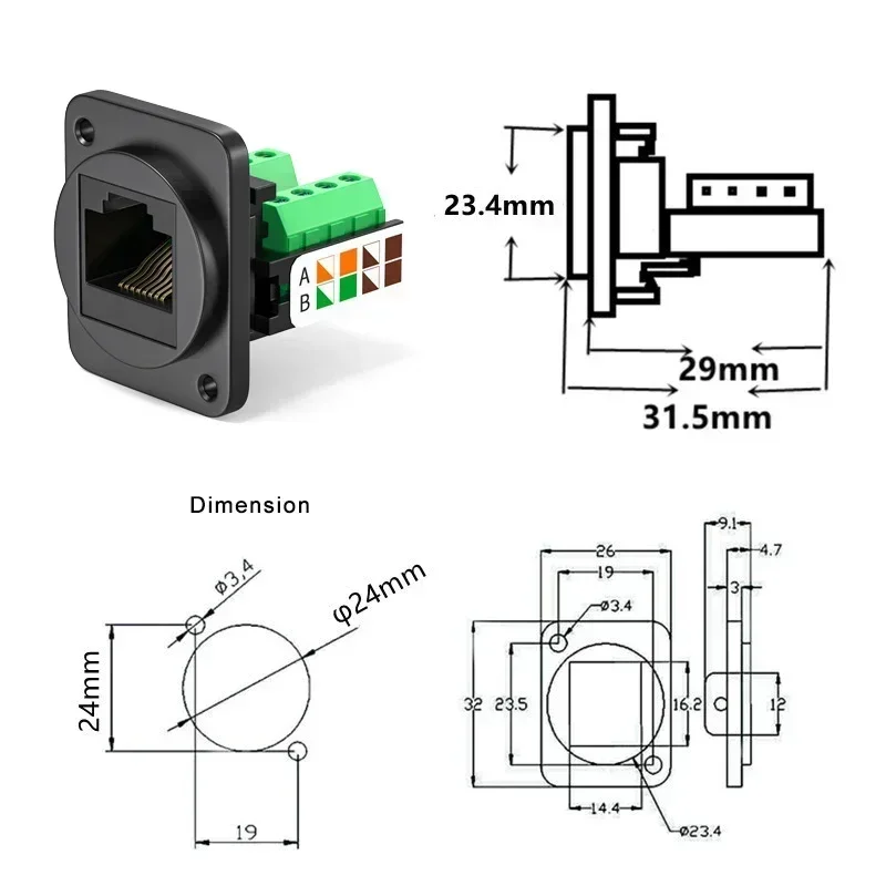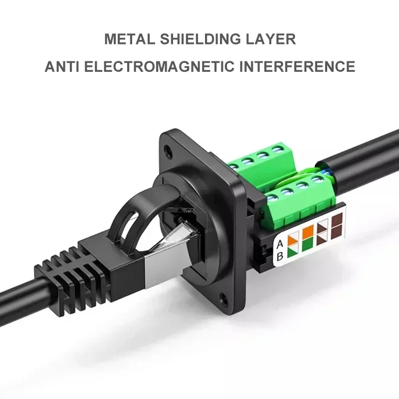 Enhance your network setup with this high-quality shielded metal RJ45 panel socket. Designed for seamless integration into your electronic enclosures, it supports CAT5E, CAT6, and CAT7 Ethernet cables. Its sleek rectangular faceplate features precise corner mounting holes for easy installation into panel cutouts, offering a professional and clean aesthetic. The solderless D-type connector design ensures reliable connections without the hassle of soldering, making upgrades or extensions straightforward. Available in multiple colors from options A to I, including socket-specific variants, this socket allows customization to match your environment. Crafted from durable materials with electromagnetic shielding, it combines both style and protection for your network components. Refined for adult enthusiasts, this socket guarantees stability, efficiency, and a modern appearance in any high-tech setting.