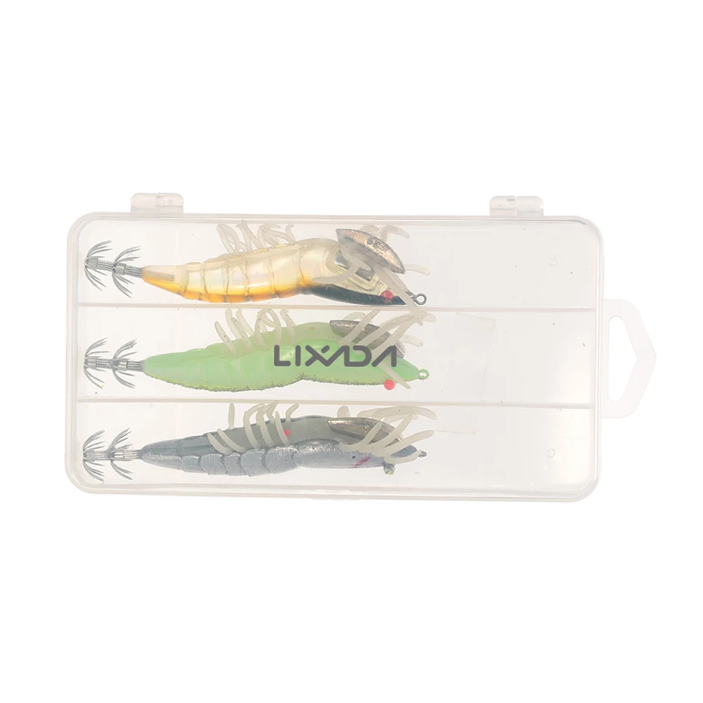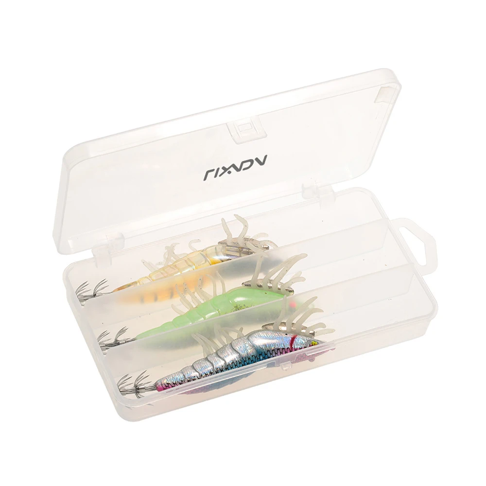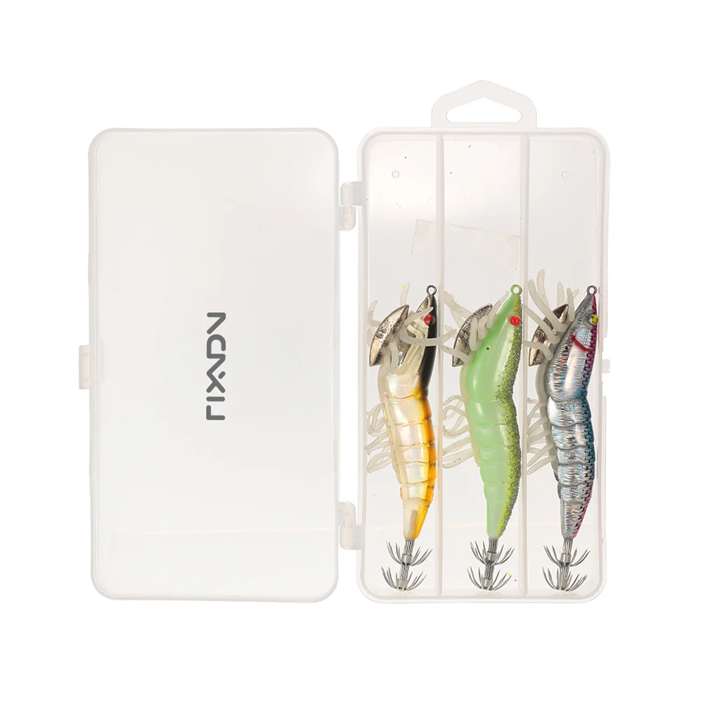 Experience the thrill of improved fishing with this innovative set of five shrimp-shaped lures, designed to mimic natural prey and attract fish effortlessly. Crafted from durable ABS and lead for stability and deeper diving, these lures measure 12cm and weigh 21g each. Their vibrant, noctilucent colors increase visibility in low-light conditions, making your catches more frequent. The realistic shrimp design features detailed fins, segmented bodies, and bright eyes, creating an enticing lure for predatory fish. Perfect for both freshwater and saltwater fishing, these jigs combine effective sinking performance with lifelike motion, significantly enhancing your chances of a successful catch. Packed neatly in a clear storage case, this set is your go-to for enjoyable fishing trips.