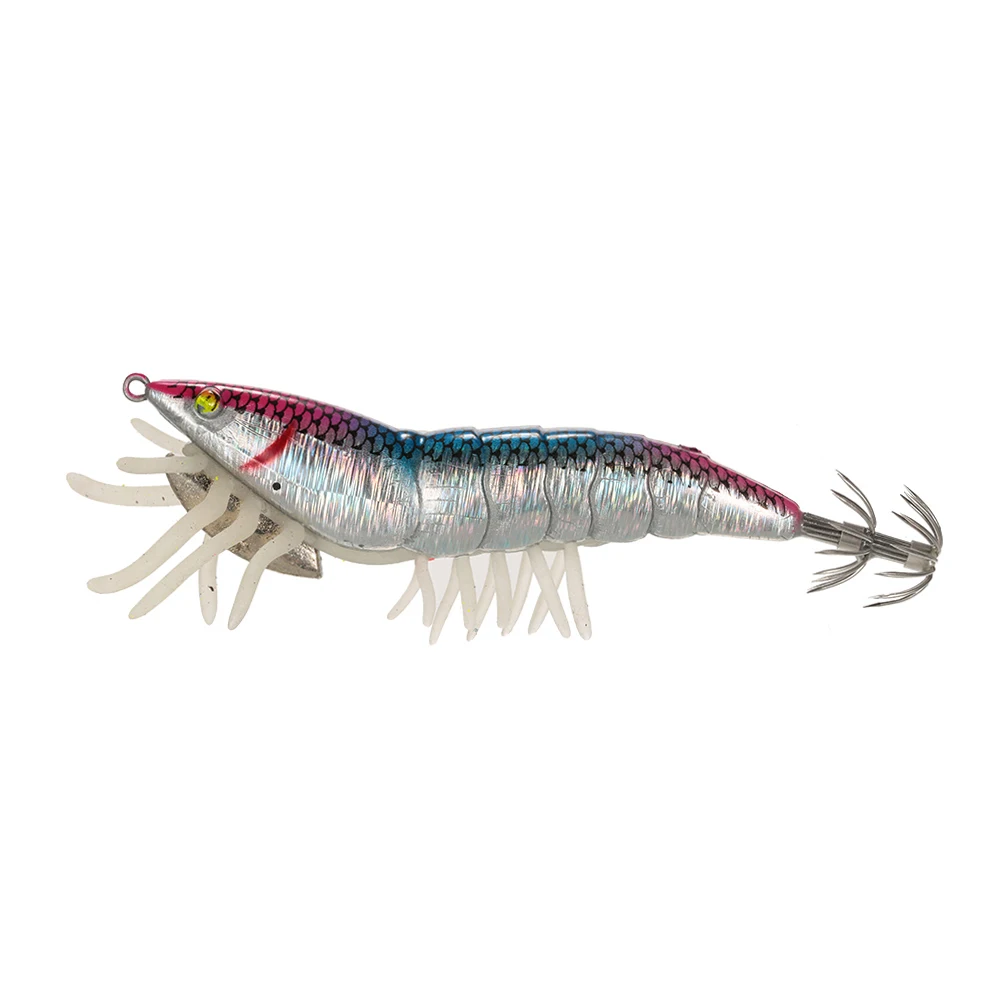 - Realistic shrimp-like body with detailed fins, segmented parts, and prominent black and red eyes, mimicking real aquatic prey to confuse and entice fish effectively.