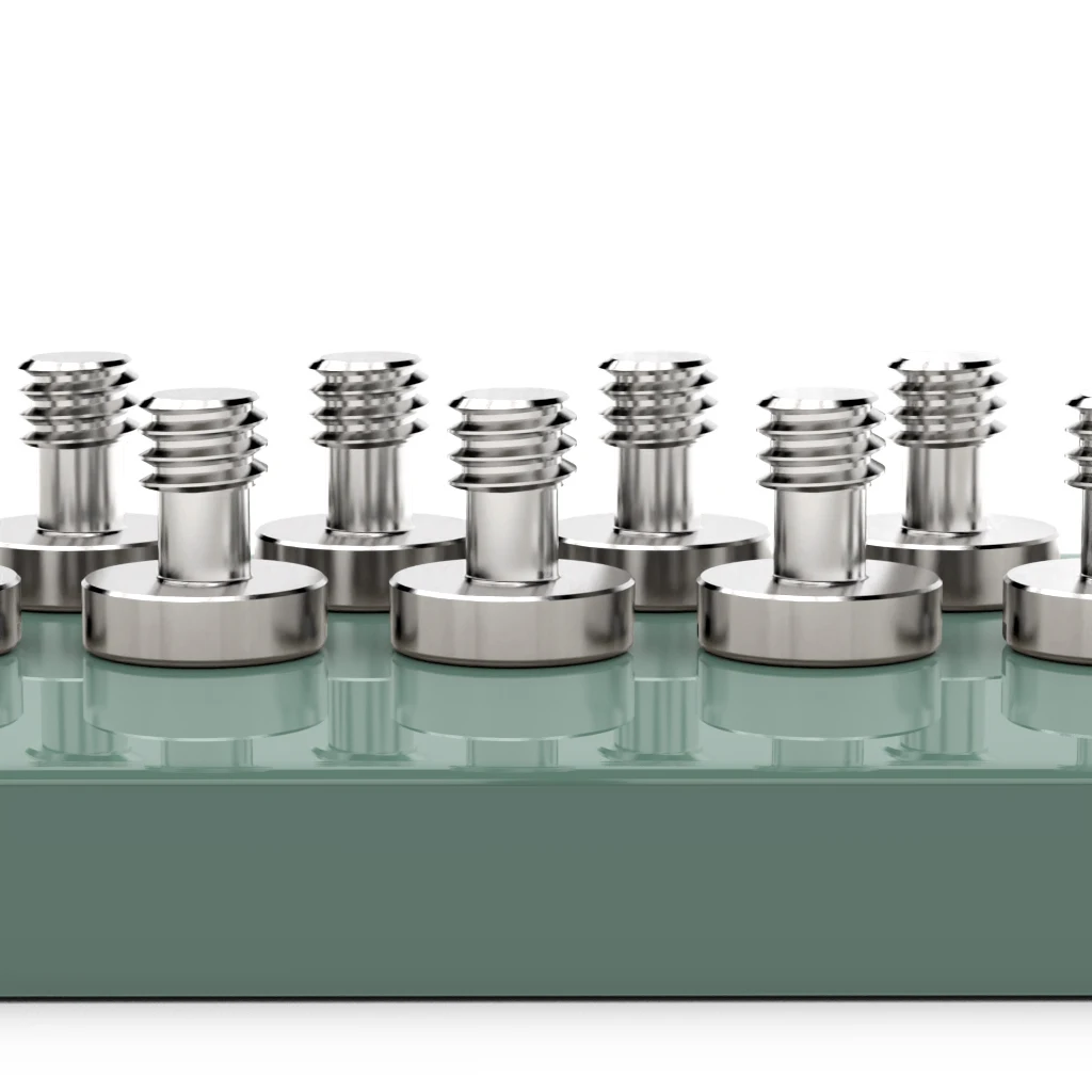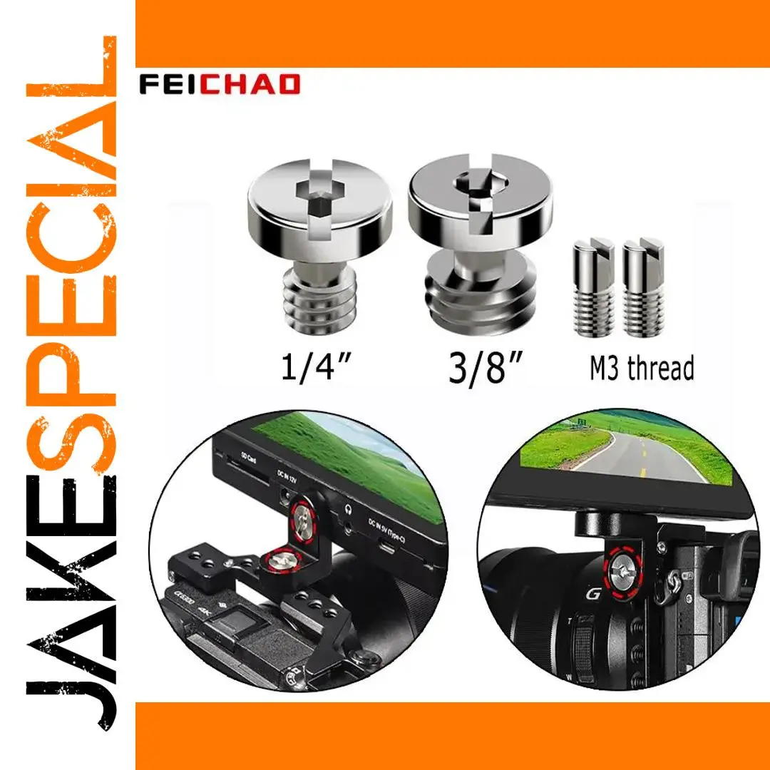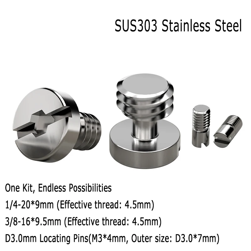 Elevate your photography and videography setup with this high-quality stainless steel camera screw kit, crafted from SUS303 stainless steel. It includes precision CNC-machined screws: 1/4”-20 x 9mm (effective thread 4.5mm), 3/8”-16 x 9.5mm (effective thread 4.5mm), and M3 x 4mm screws, each featuring a slotted D3.0mm Arri locating pin with outer dimensions of D3.0 x 7mm, head diameter of 12mm, and thickness of 3.5mm. Designed for compatibility with standard 1/4”, 3/8”, and M3 mounting threads, these durable screws are perfect for securing cameras, tripods, accessories, and quick release plates, ensuring reliable, corrosion-resistant performance.
