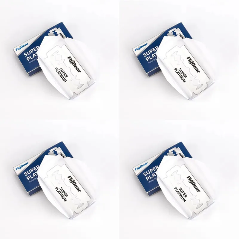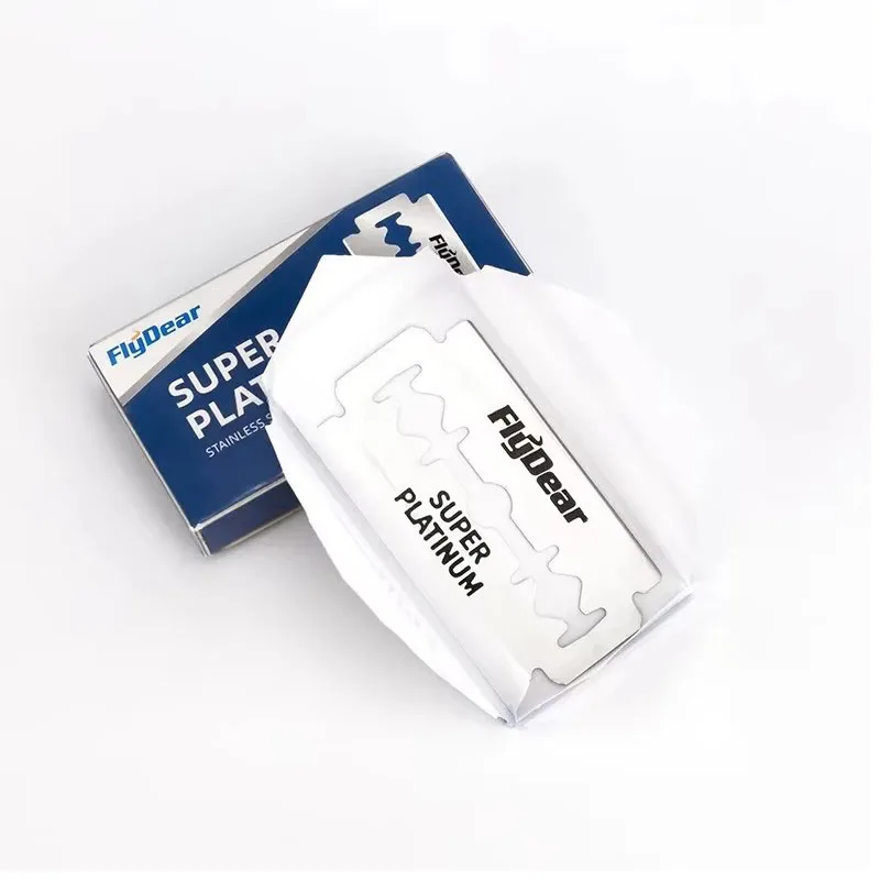 Experience a superior shaving experience with these high-quality, stainless steel double-edged razor blades by Flydeep. Designed for meticulous grooming, these blades offer a sharp, precise edge that ensures a clean, close shave every time. The platinum coating enhances durability and provides a sleek, reflective finish, giving you a professional barber-style shave at home. Each blade is individually wrapped in wax paper for safety and hygiene, making them easy to handle and store. The minimalist packaging with white and blue accents exudes a clean, professional aesthetic. Whether you're a grooming enthusiast or seeking reliable replacement blades, these blades deliver comfort, precision, and long-lasting performance. Enjoy a smooth shave that leaves your skin moisturized and irritation-free.