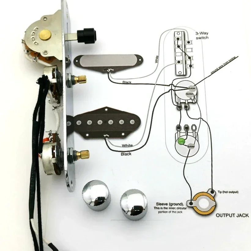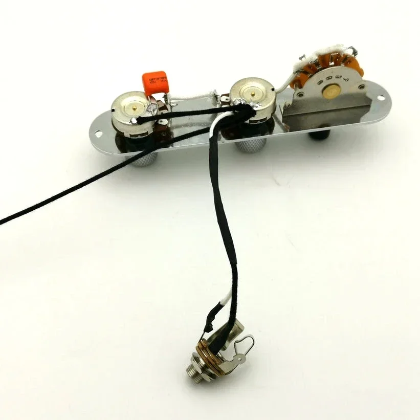 Enhance your TL electric guitar with this premium wiring harness, featuring a 250K copper shaft potentiometer, a 3-band switch, and a vibrant orange 473J 100V capacitor. The chrome control panel adds a sleek, modern touch, complemented by volume and tone knobs for precise sound shaping. Equipped with three stereo output jacks and wax-sealed braided wiring for secure, durable connections, this harness is compatible with all TL models. Weighing only 220 grams per set and made in Korea, it combines technical excellence with a classic aesthetic, ensuring reliable performance and easy installation, backed by a one-year warranty and comprehensive support.