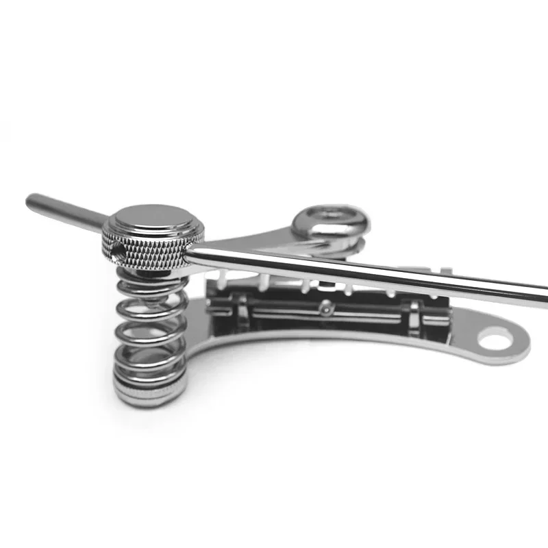 Enhance your guitar’s versatility with this durable, high-quality Tune-O-Matic style electric guitar bridge featuring a tremolo system, compatible with LP and SG guitars. Crafted from sturdy metal, it offers a sleek, polished finish available in black, chrome, and gold, with a string spacing of approximately 10.5mm. Its solid construction and adjustable saddles allow for precise intonation and expressive tremolo effects. Designed for guitar enthusiasts seeking professional-grade components, this bridge combines durability with refined aesthetics, ensuring long-lasting performance and a sophisticated look. Perfect for customizing or upgrading your guitar setup with a sleek, industrial style.