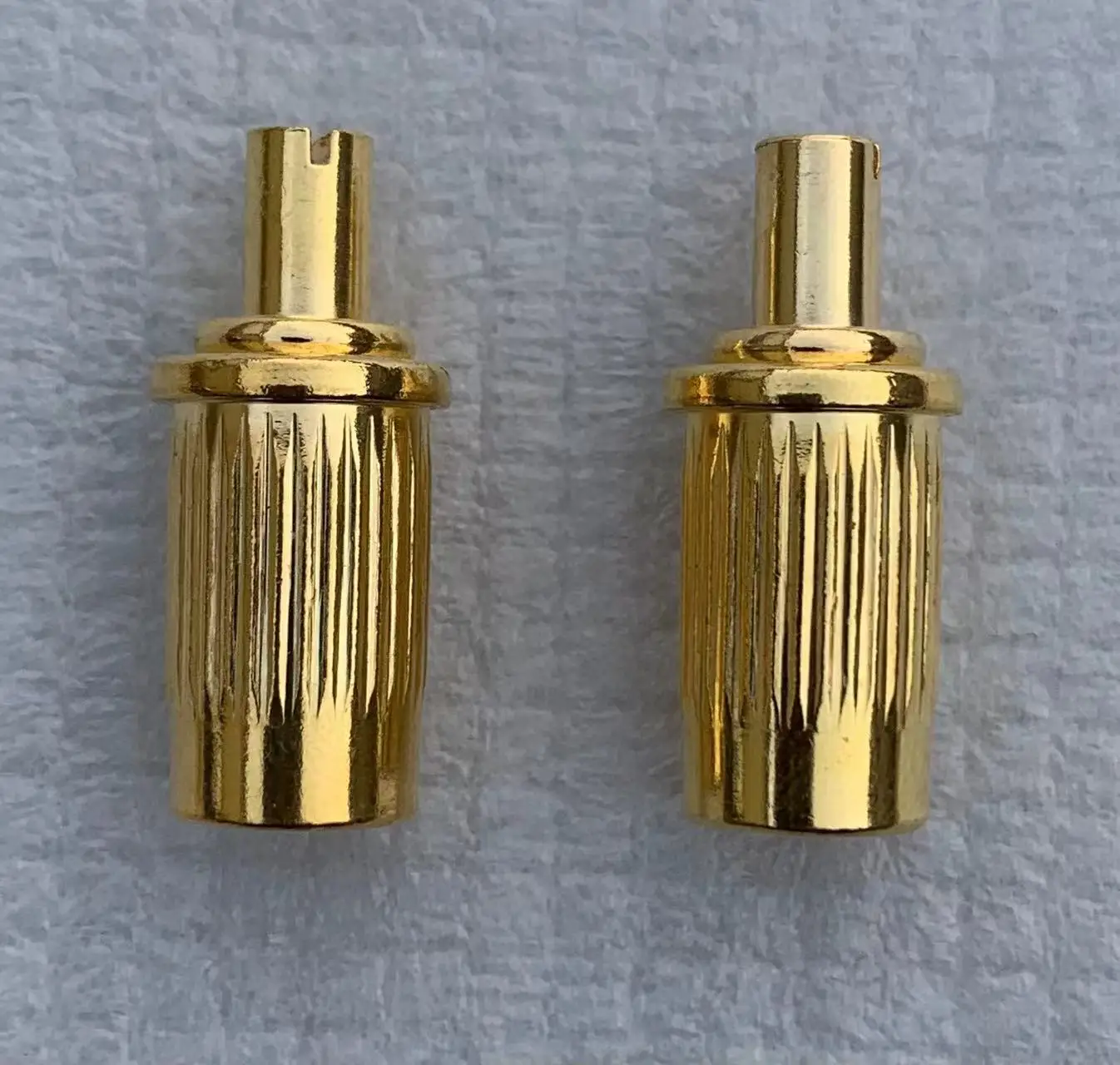 - Gold versions feature reflective, smooth surfaces with flat, circular heads and precise notches for secure fitting and easy adjustment.