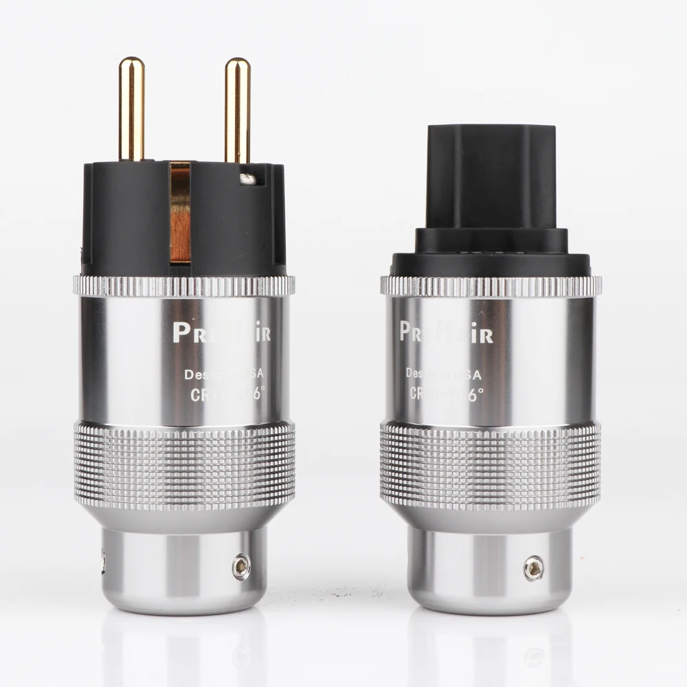 Enhance your high-end audio or electronic setup with this premium pair of AC power connectors featuring 24K gold-plated US and EU power plugs and an IEC320 C13 adapter. Crafted from durable aluminum alloy with brass pins and fully gold-plated for superior conductivity, these connectors support a voltage of 250V and a current of 16A, compatible with cables ranging from 16mm to 20mm in diameter. The sleek design includes knurled textured surfaces and black plastic top sections, combining industrial elegance with high-performance reliability. Ideal for audiophiles seeking optimal power transmission and a refined aesthetic for their professional or high-end electronic devices.