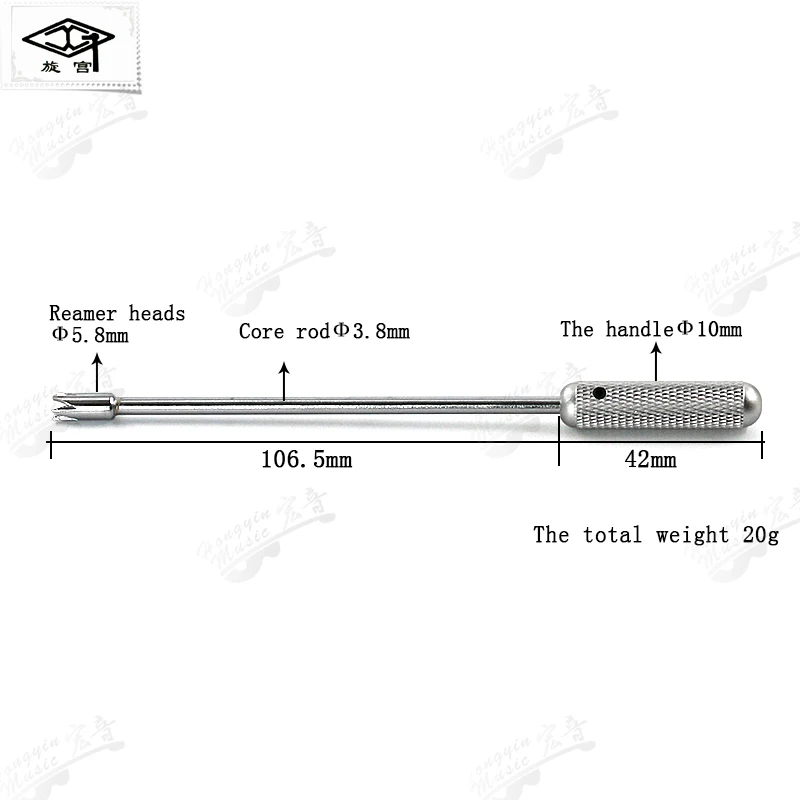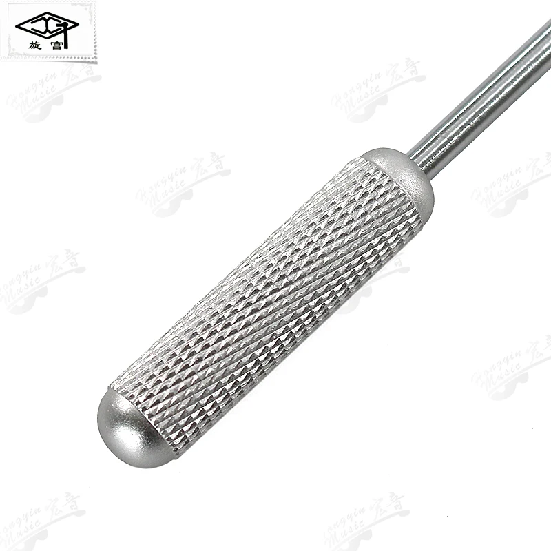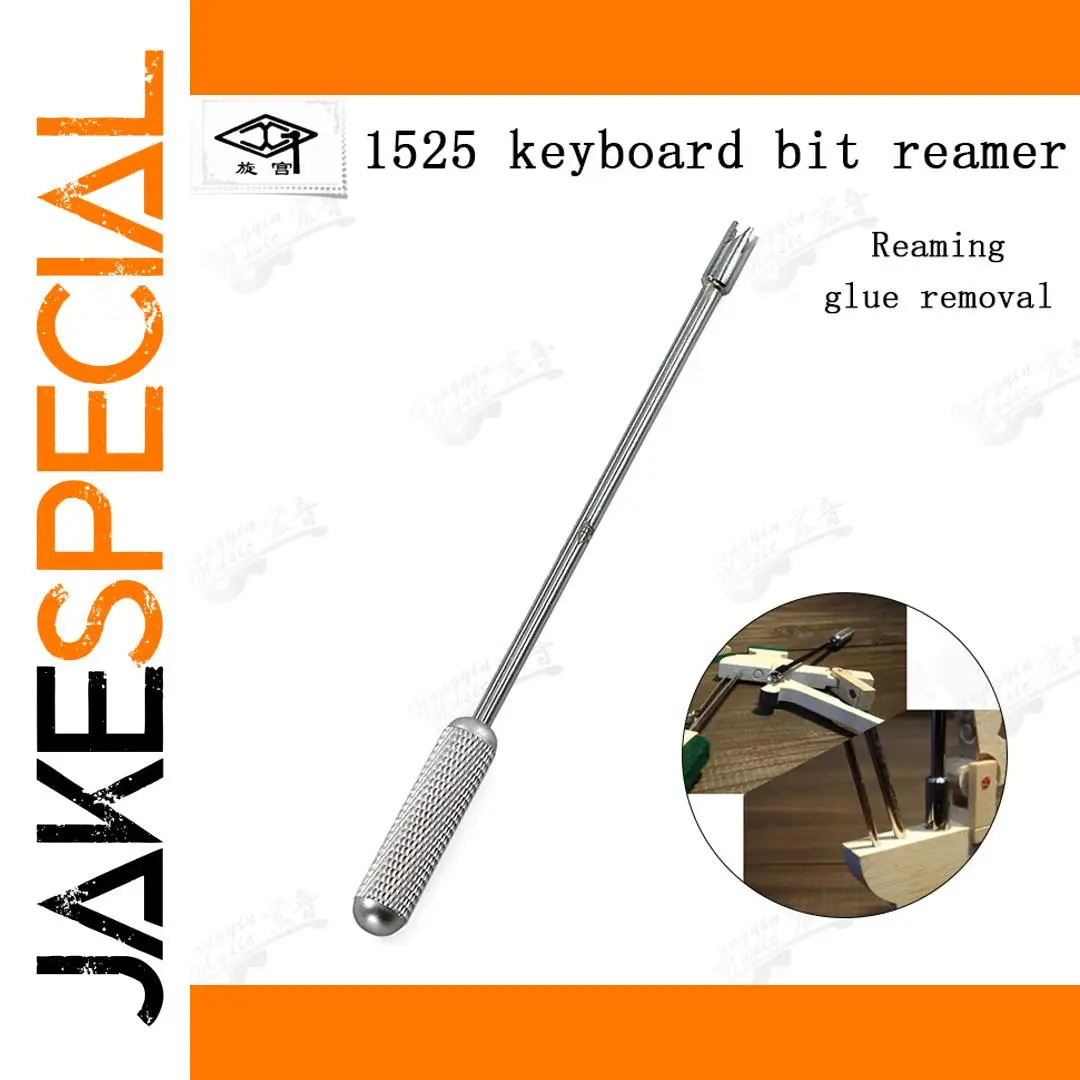 The GQ1525 professional-grade keyboard bit reamer is crafted from durable metal and wood, designed for precise piano tuning and maintenance. It features a polished stainless steel shaft with a textured knurled handle for secure grip, and a cylindrical reamer tip with an angled, sharp cutting edge for accurate reaming tasks. The tool includes a linkage rod, disc spring, and is compatible with the GQ1525 model. Its minimalist, utilitarian design emphasizes quality, durability, and precision, making it an essential instrument for expert piano technicians. No batteries or chemicals are involved, ensuring reliable, professional performance in delicate instrument repairs.