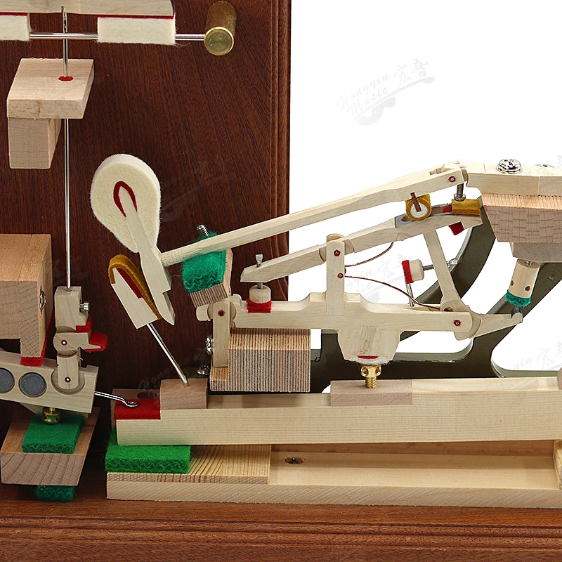 - Features a horizontal central arm with fine adjustment levers and connecting blocks, enabling detailed and controlled string striking or tuning actions for optimal sound quality.