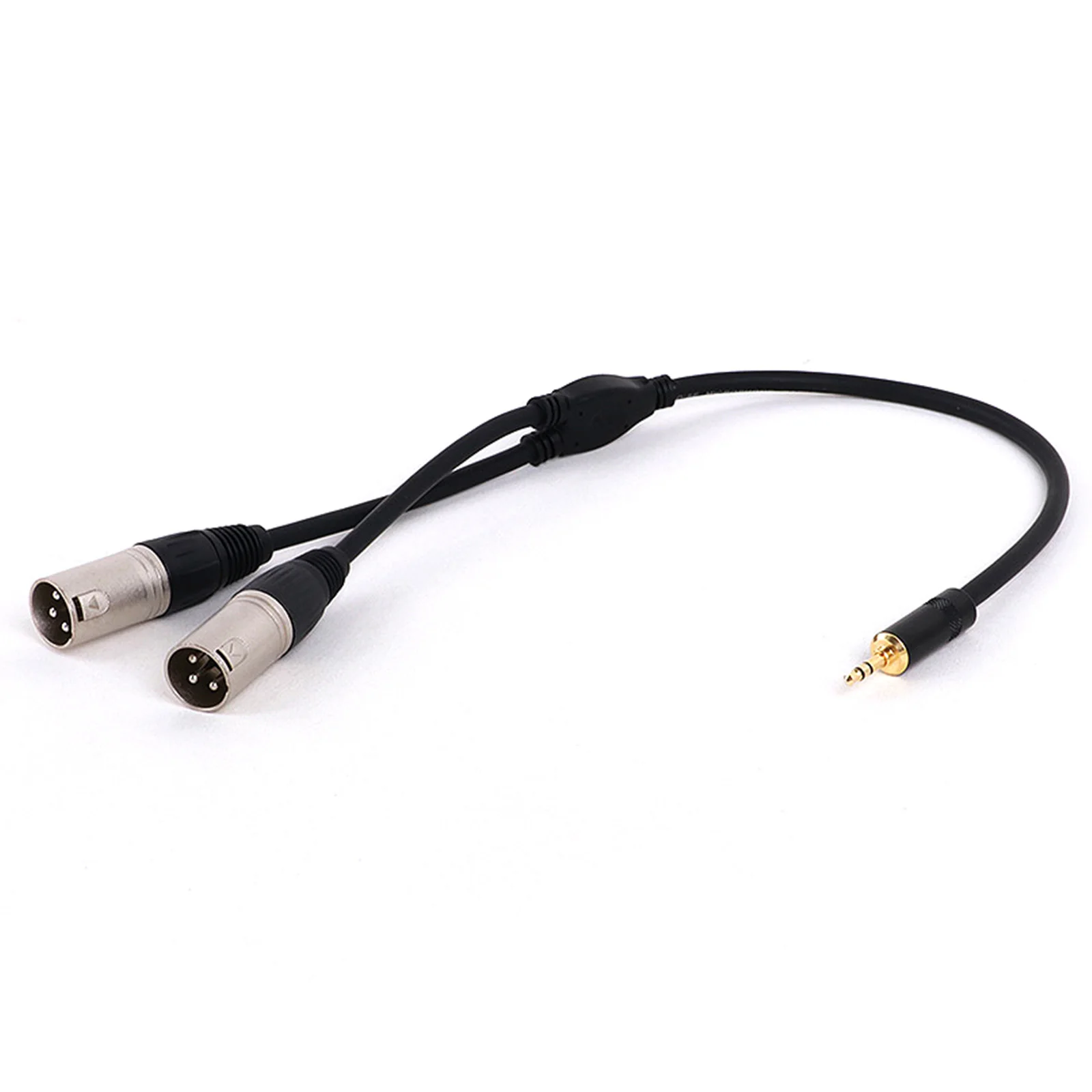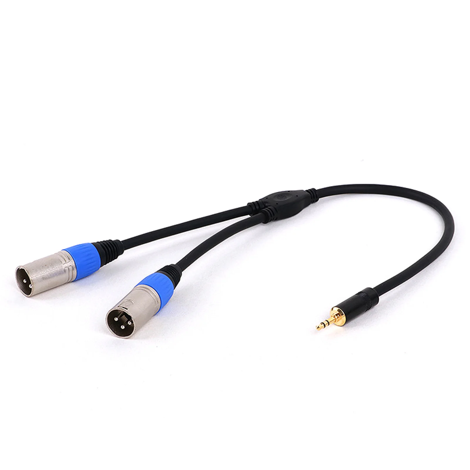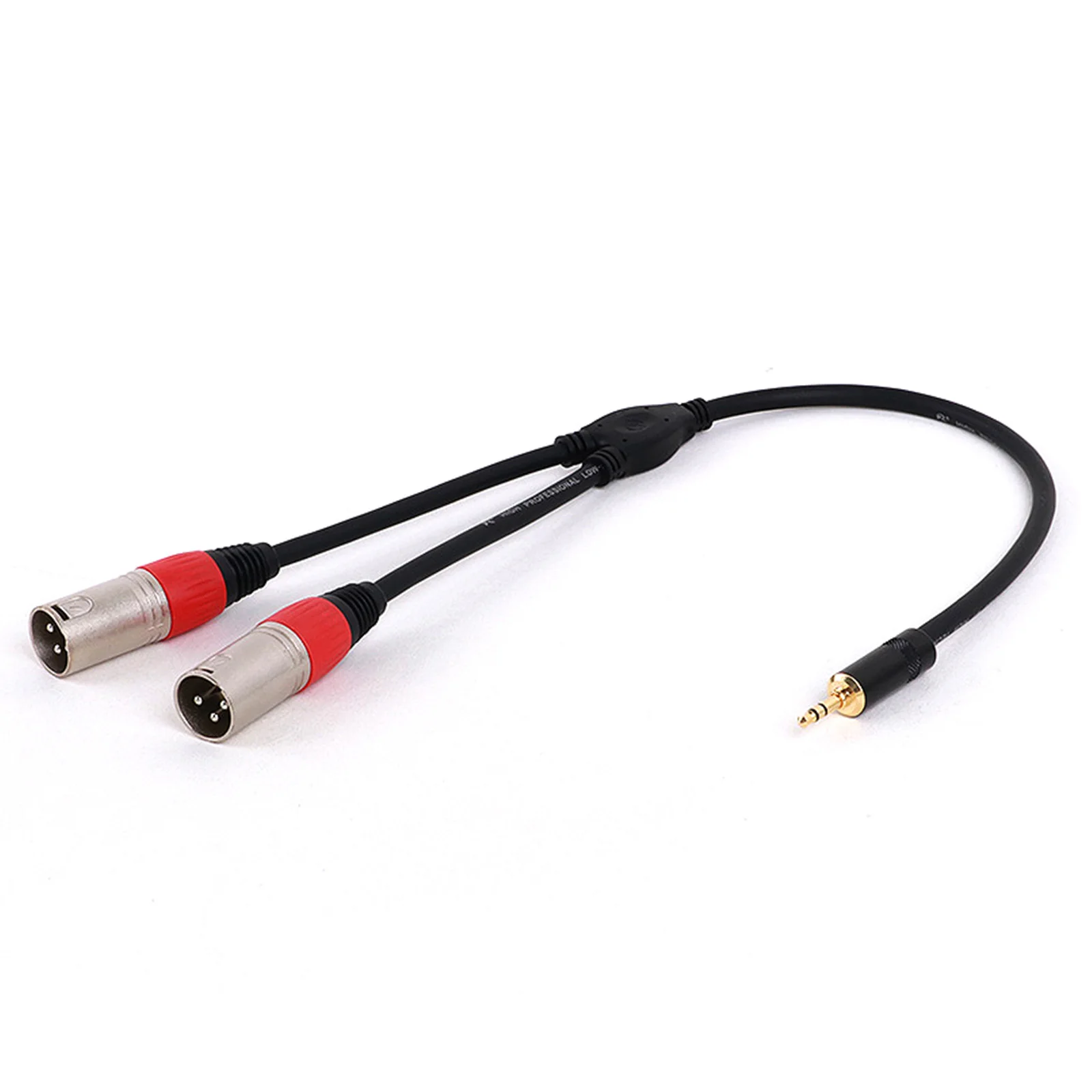 Enhance your audio setup with this high-quality 3.5mm to dual XLR extension cable available in 0.3m or 0.5m lengths and vibrant color options. Crafted with oxygen-free copper conductors, it offers superior signal clarity and durability, featuring internal strain relief and flexible rubber shielding for rugged use. Designed for professional applications such as microphones, recording consoles, PA systems, and mixers, this balanced audio cable effectively rejects EMI and RFI interference through foil and braided shielding. The sleek, color-coded connectors include a 3.5mm stereo male jack with a 6±0.5mm diameter and dual 3-pin XLR male or female connectors, ensuring reliable, high-quality connections in any audio environment.