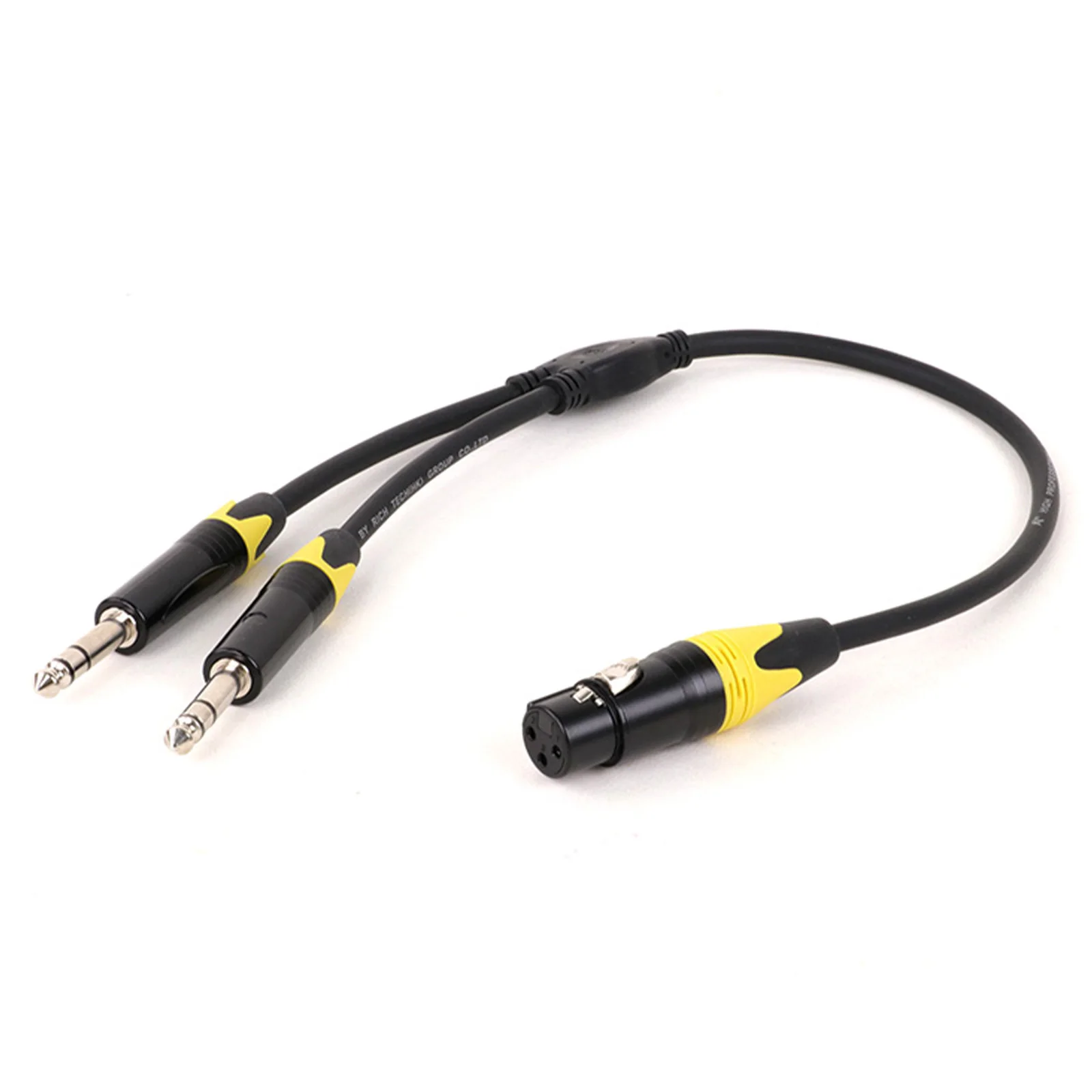 Experience reliable, high-quality audio connection with this flexible 30cm or 50cm splitter cable, featuring a durable rubber jacket and corrosion-resistant 6.35mm connectors in multiple vibrant colors. Equipped with a sturdy metal housing and internal strain relief, it ensures secure connections. The cable’s 27 AWG oxygen-free copper conductors deliver clear signal transmission, while the copper braided shield minimizes electromagnetic interference and hum. Designed for professional audio applications such as microphones, mixers, PA systems, and recording consoles, this fully molded, shielded splitter guarantees minimal signal loss and long-lasting durability in a sleek, modern design.