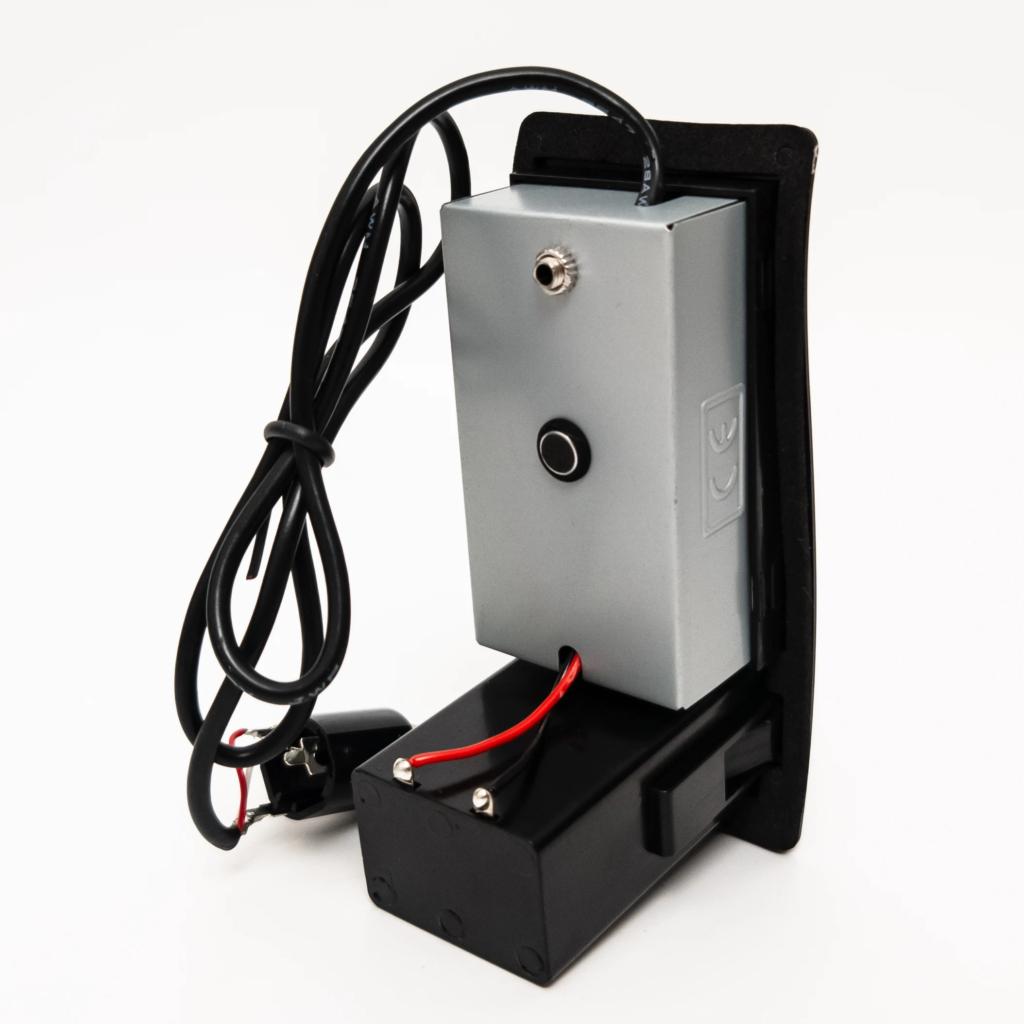 - Supplied with essential accessories such as a shielded pickup cable, metal output jack assembly with nuts and washers, four mounting screws, and a double-sided adhesive pad for secure installation.