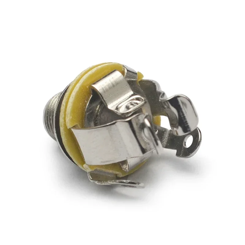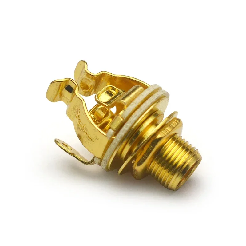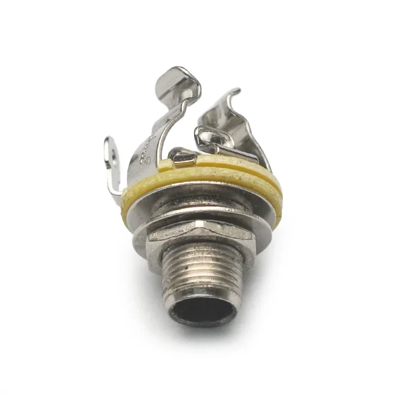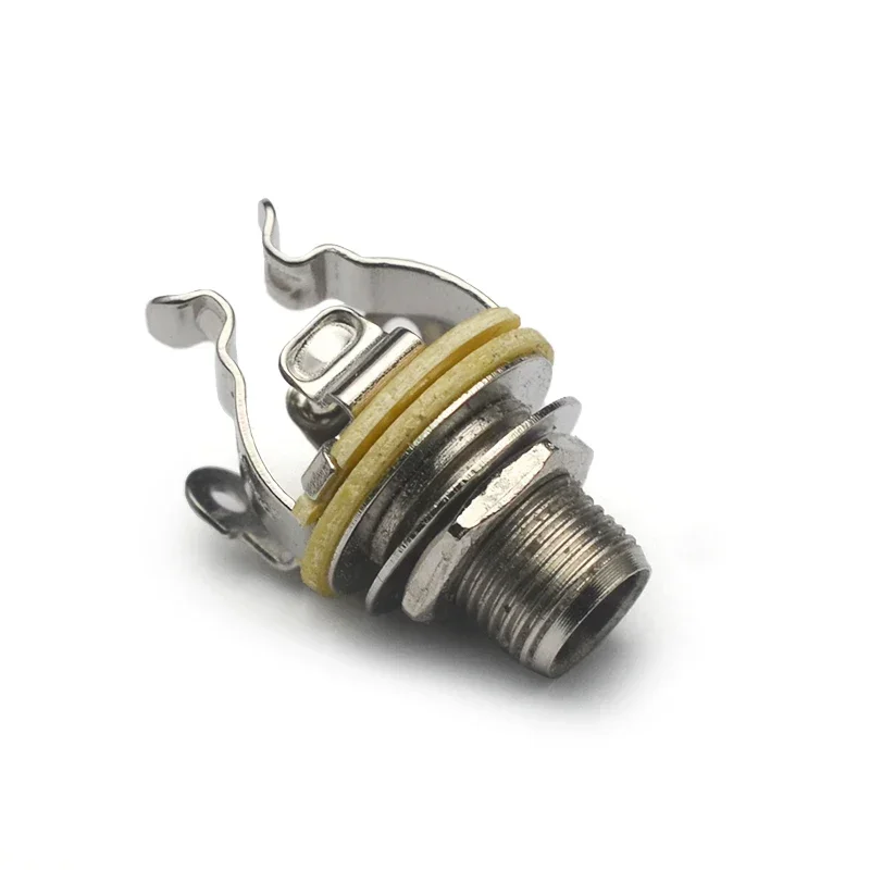 Enhance your audio setup with these two high-quality 6.35mm mono output jacks, featuring double positive tips and tension grounds for stable, minimal-noise signal transmission. Crafted from durable metal, each jack has a tensioned clip design that securely locks cables in place, ensuring reliable connection during professional use. Available in sleek nickel and polished gold finishes, these jacks combine ruggedness with a refined metallic aesthetic. Ideal for high-performance audio equipment, the package provides two jacks with precise dimensions, making installation straightforward. Trust these reliable components to deliver clear, consistent sound for your recording or live sound applications.