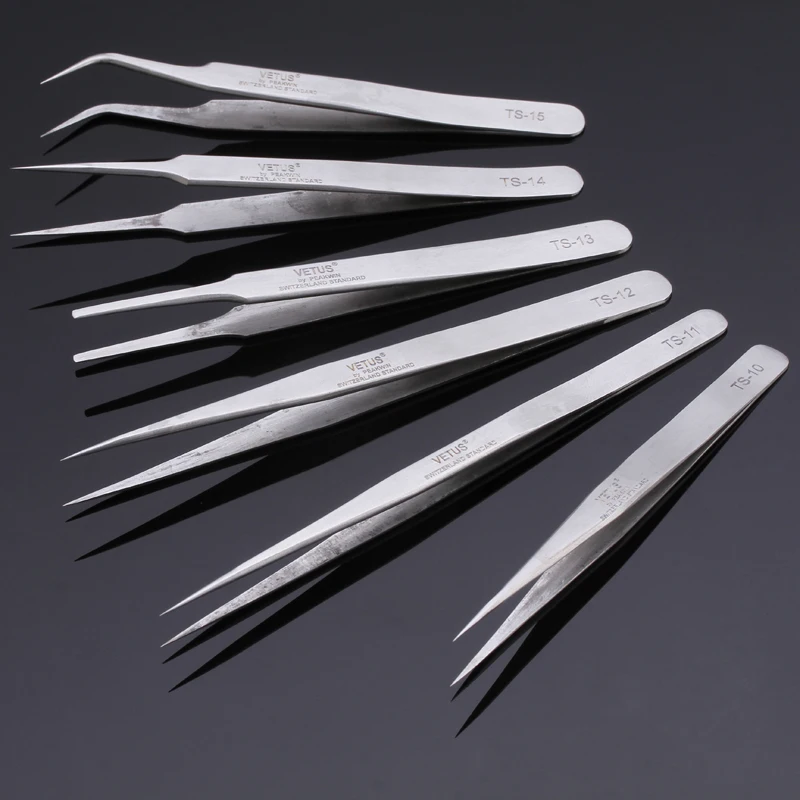 Experience precision and durability with this 6-in-1 stainless steel tweezers set, featuring models TS-10, TS-11, TS-12, TS-13, TS-14, and TS-15, each with both curved and straight tips. Designed for electronic repair of mobile phones and other devices, these corrosion-resistant tweezers offer exceptional control and reliability. The sleek, polished stainless steel construction ensures a smooth, reflective surface, while the varied tip designs provide versatility for intricate tasks. Packaged with professional-quality presentation, this set is perfect for enthusiasts and technicians, helping you achieve precise repairs with confidence and ease.