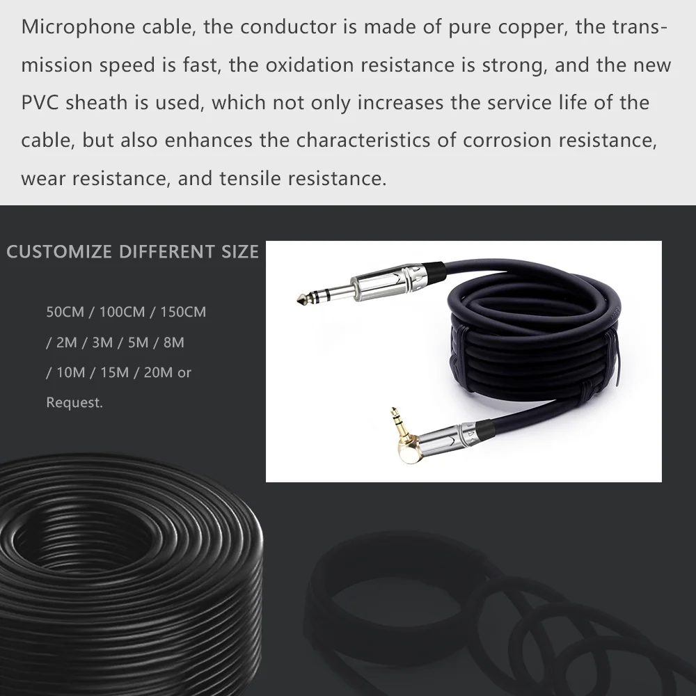 Experience reliable and high-quality audio connectivity with this durable 4mm diameter extension cable, featuring a gold-plated 3.5mm right-angle male connector and a straight 6.35mm male stereo jack. Available in lengths of 0.3m, 1m, 1.5m, 2m, 3m, 5m, 8m, 10m, and 15m, with color options in black, red, or black and red, this flexible, shielded cable is designed for professional audio applications including microphones, recording consoles, PA systems, and mixers. The colorful, silver-plated contacts ensure crisp, high-fidelity sound, making it an ideal choice for musicians, sound engineers, and audio enthusiasts seeking durability and top performance.
