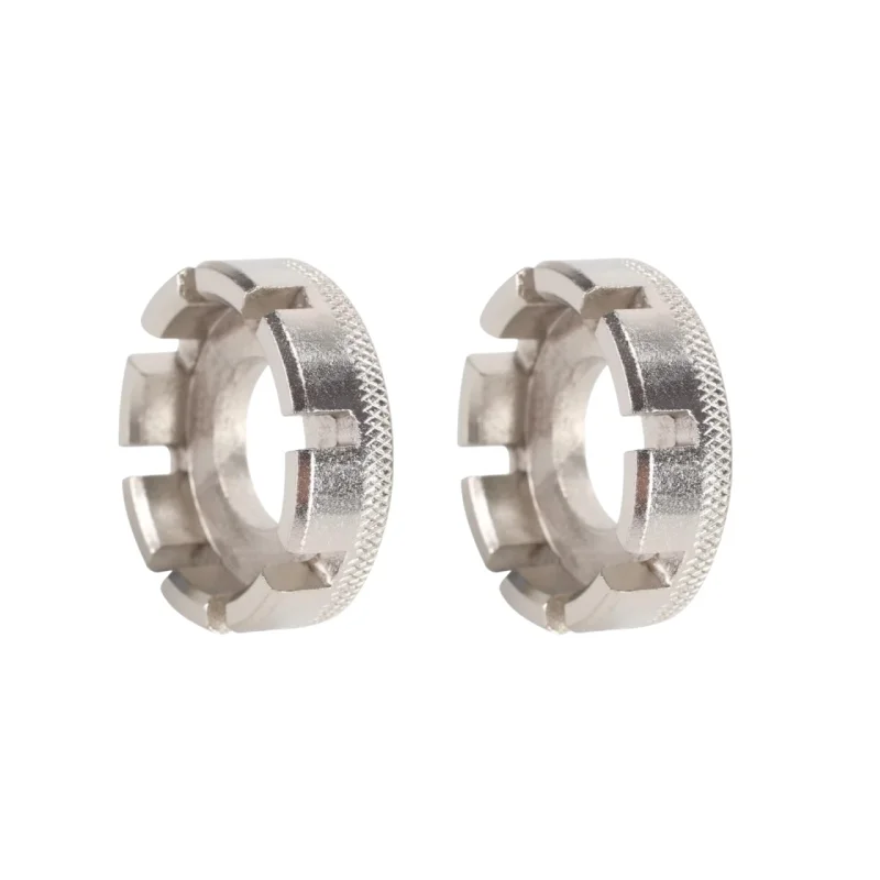 Enhance your bicycle maintenance with this durable steel spoke wrench, designed specifically for road and mountain bikes. Available in a single-piece or a set of two, both in sleek silver finish, this precision tool features a circular ring shape with engraved size markings in metric and imperial units, ensuring compatibility with various spoke sizes. The textured knurled edge provides a firm grip for easy tightening and adjustments, while evenly spaced rectangular notches enable effective disassembly of wheel spokes. Crafted for durability and efficiency, this compact, high-quality bicycle repair tool is an essential addition to any cyclist’s maintenance kit, making wheel repairs smooth and hassle-free.