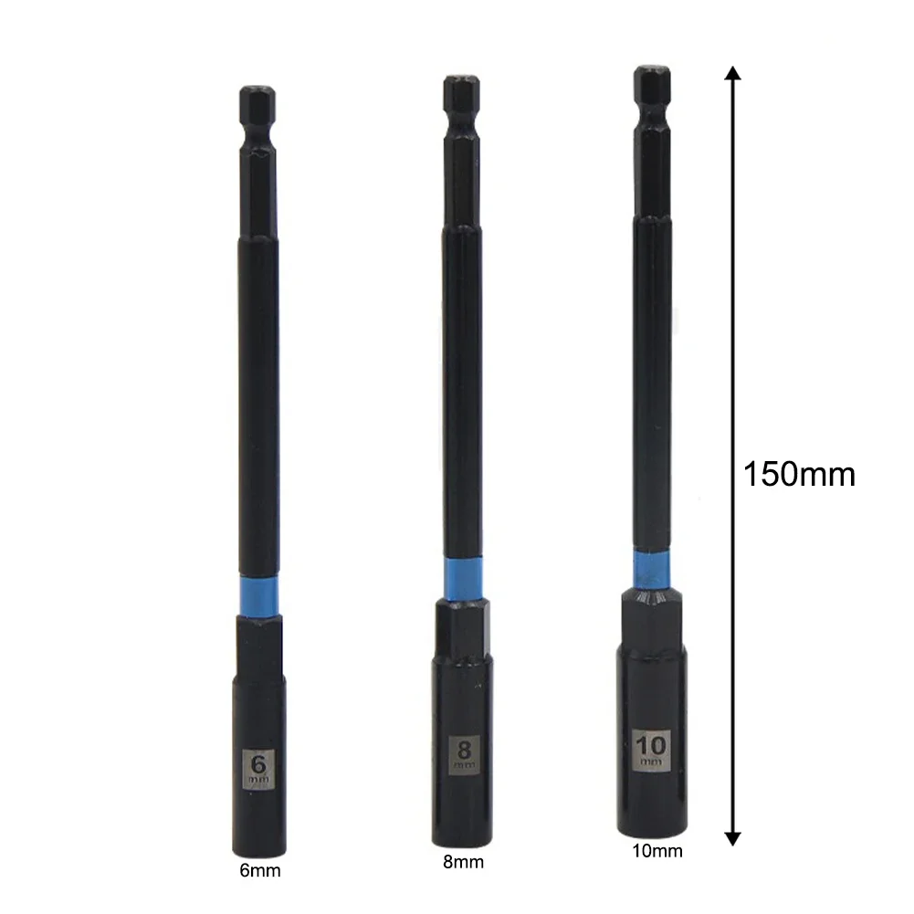 - Technical specifications: Length 150mm; Material: Chrome Vanadium Steel; Colors: Black with blue marker; Compatible with various power and hand tools; Ideal for support hexagon tools.