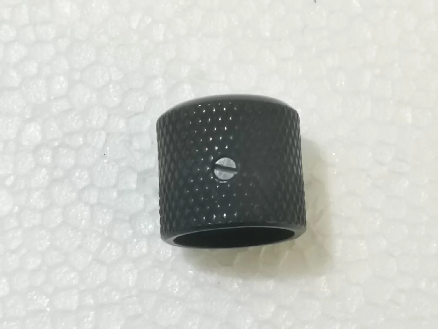 Enhance your electric or bass guitar with these professional black potentiometer knobs, crafted from durable materials with a sleek matte finish. Featuring a cylindrical shape with a subtly rounded top and textured diamond-patterned grip on the sides, these knobs provide both a modern aesthetic and excellent handling. Designed to securely fit standard potentiometer shafts, they do not require batteries, are chemical-free, and are manufactured in Korea. Perfect for replacing worn or missing parts, these knobs offer a minimalist, utilitarian look that merges practicality with a polished, understated style—bringing a refined, professional touch to your instrument.