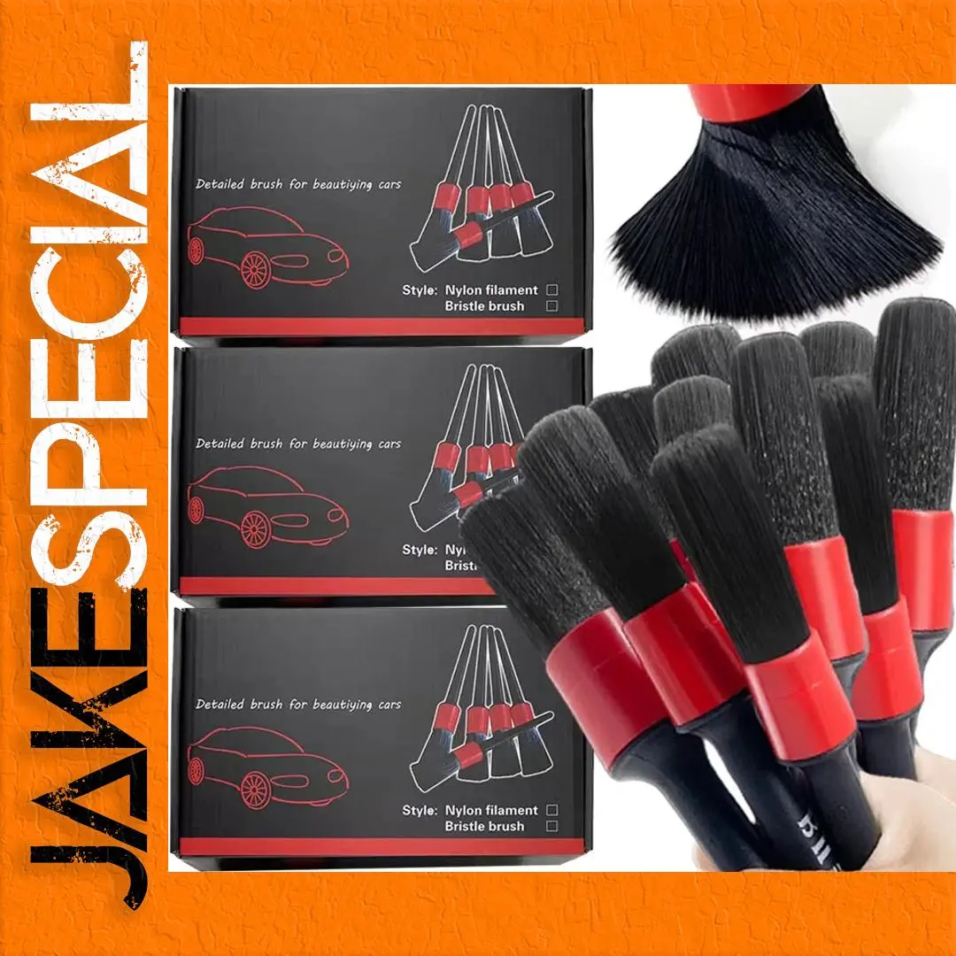 Experience professional-level car cleaning with this modern set of black detailing brushes. Designed for precision and delicate surfaces, the brushes feature dense, soft black bristles and a sleek black handle accented with vibrant red near the bristle end for a stylish look. Measuring approximately 24 centimeters in length and 4 centimeters in width and height, these brushes are perfect for cleaning dashboards, air vents, wheels, and other intricate interior and exterior surfaces. Their lightweight and elongated design allow for comfortable handling and excellent control. The minimalistic packaging with a red car outline adds to the contemporary aesthetic, making this set not only highly functional but also visually appealing. Trust these brushes to deliver a professional touch to your vehicle detailing routine.