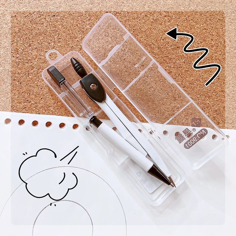 The professional circle compass, model number 2344, is your essential drafting companion, expertly designed for carpentry and educational use. Featuring a smooth white body complemented by a matte black grip, it ensures ease and comfort during use. The integrated hinge mechanism provides seamless adjustments, making it ideal for precise circular drawings. Accompanying accessories, including a small pencil, are organized within a transparent case, allowing you to keep your workspace tidy and efficient. Picture yourself effortlessly crafting accurate designs and enjoying a fluid drawing experience with this reliable compass by your side.