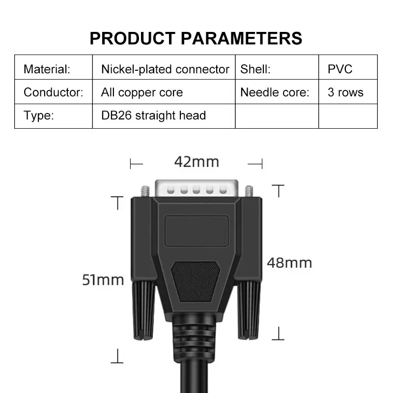 Experience seamless connectivity with this high-quality DB26 extension cable designed for professional data transfer needs. Crafted with precision, this cable features a 26-pin connector available in male-to-male, female-to-female, and mixed configurations, perfect for extending your existing setup. Made with pure copper twisted pair shielding and 28 AWG wire, it ensures optimal conductivity, minimal interference, and reliable performance. The durable PVC outer jacket provides flexural strength and protection against daily wear. Whether you need a short connection or an extended reach, available lengths range from 0.5m to 15m, giving you flexibility and adaptability. Trust in its UL certification, signaling safety and quality standards for your professional environment.