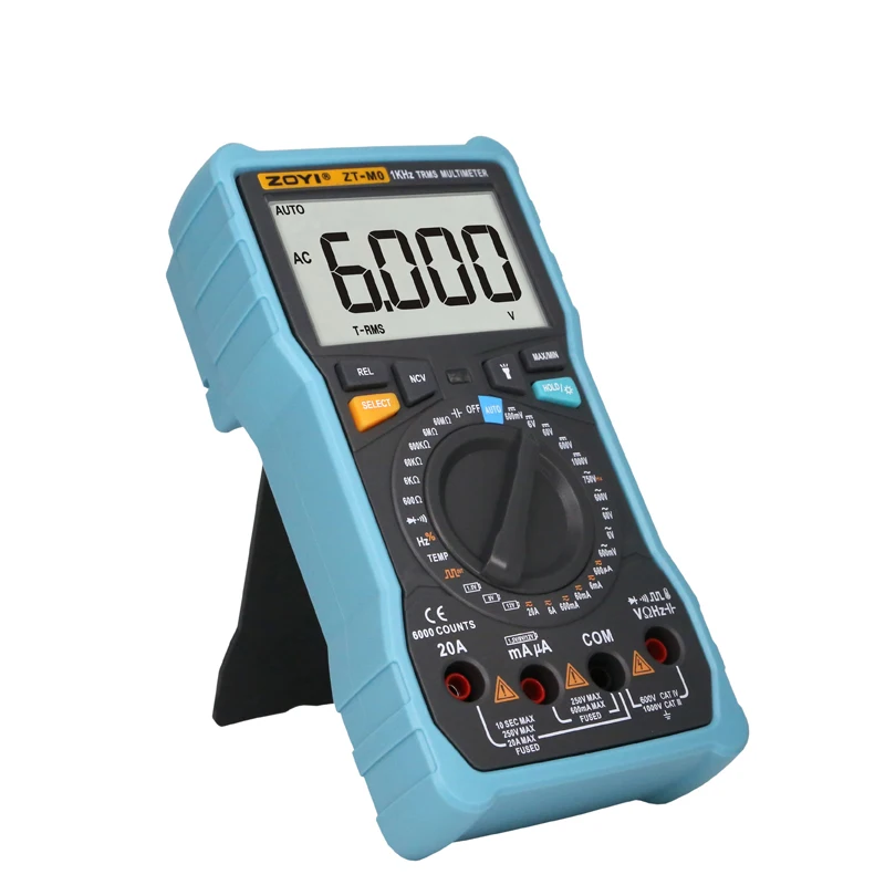- True RMS measurement capabilities allow for precise AC voltage, current, and other readings, especially useful with complex waveforms and distorted signals.