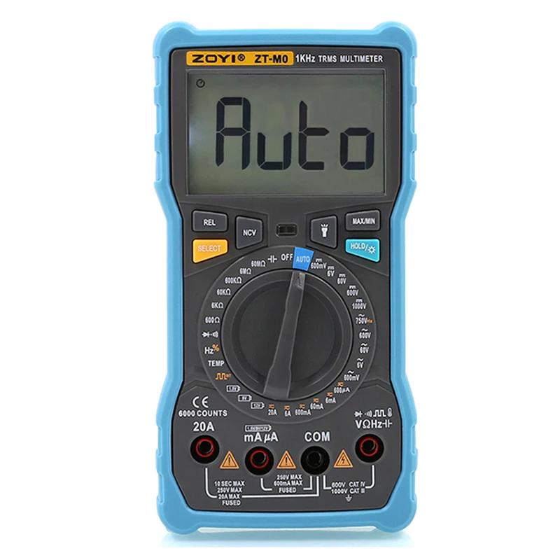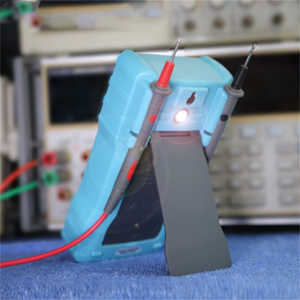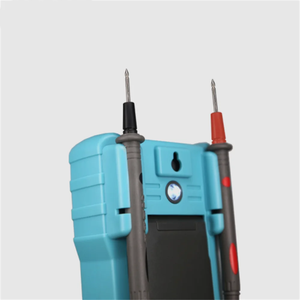 Experience the reliability and accuracy of this this digital multimeter, designed for professionals and enthusiasts alike. Its sleek, rectangular shape with rounded edges offers a modern look, while the black matte finish paired with a durable light blue rubber protective casing ensures a sturdy grip and added protection. The large, backlit LCD display provides clear visibility of readings in any environment, allowing you to analyze voltage, resistance, and other parameters effortlessly. With features like auto recognition for voltage, resistance, and continuity, plus manual range selection, this device simplifies complex measurements. Compact yet powerful, it’s your ideal tool for electrical diagnostics, maintenance, and troubleshooting, making your work safer and more efficient.