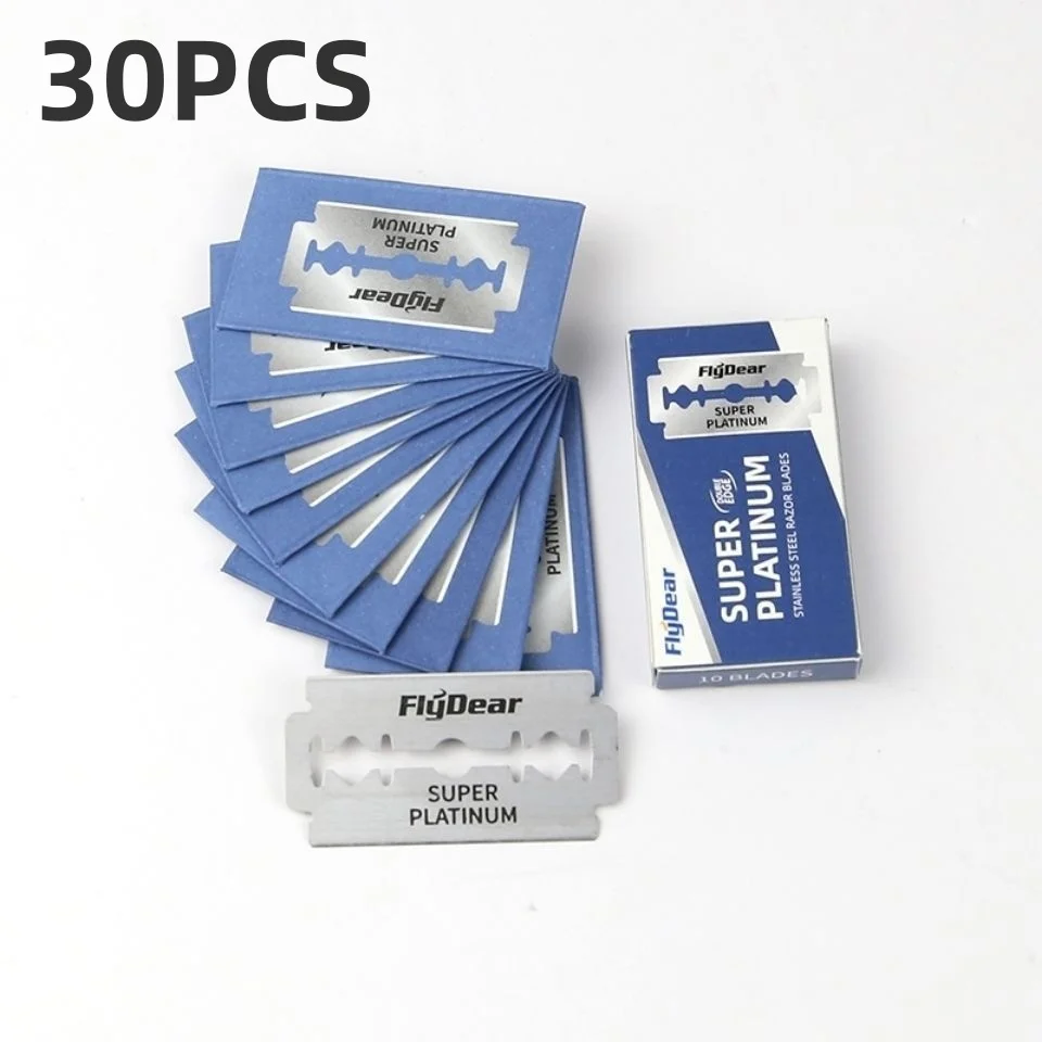Experience a professional-grade grooming with these platinum-plated stainless steel double-sided razor blades available in packs of 30, 50, or 100 pieces. Each sharp, precisely engineered blade ensures a clean, accurate shave for facial, underarm, bikini, and body hair removal. Individually wrapped in wax paper for enhanced safety and hygiene, these durable blades require no batteries or power, making them ideal for both professional barbering and personal grooming. Their sleek, shiny finish not only offers a sophisticated appearance but also guarantees long-lasting performance. Trust these blades to deliver safety, precision, and durability for every grooming session, whether at home or in a professional setting.