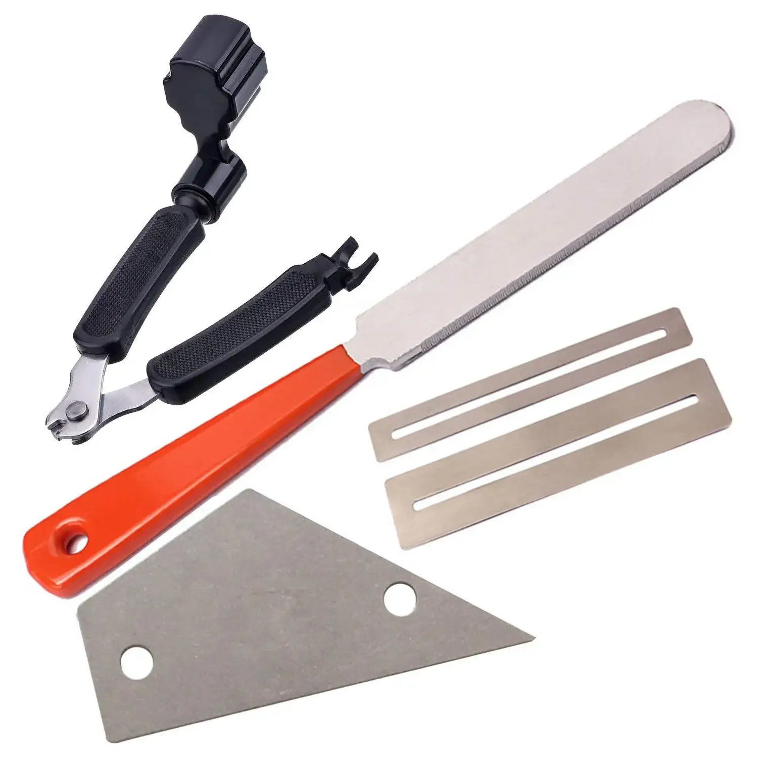 Seamlessly integrate this this guitar repair tool set into your guitar maintenance routine. Its durable construction and precise design will help you achieve flawless fret leveling, ensuring smooth playability and optimal sound quality. Whether you're fine-tuning your own instrument or working professionally, these tools will become your trusted companions. Crafted for durability and ease of use, they provide you with the confidence needed to complete intricate repairs and adjustments. Don't miss the opportunity to elevate your guitar maintenance skills—order today and experience the difference a professional-quality set can make!