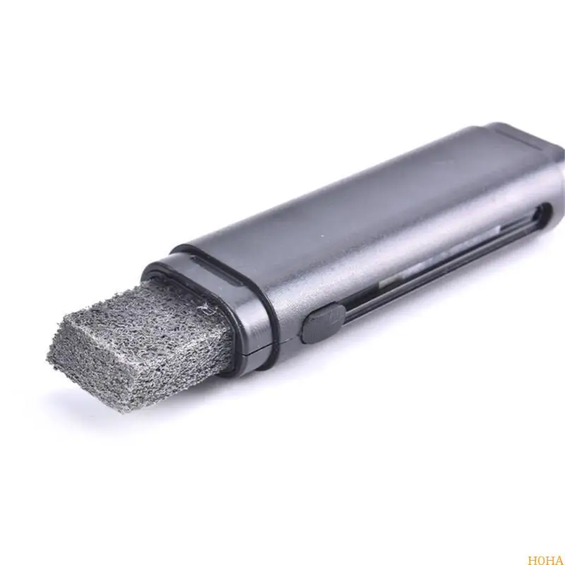 - The light grey or beige textured cleaning head, made of foam or rubberized material, efficiently scrubs and removes rust, making your strings glide smoothly, and keeps them in optimal playing condition.