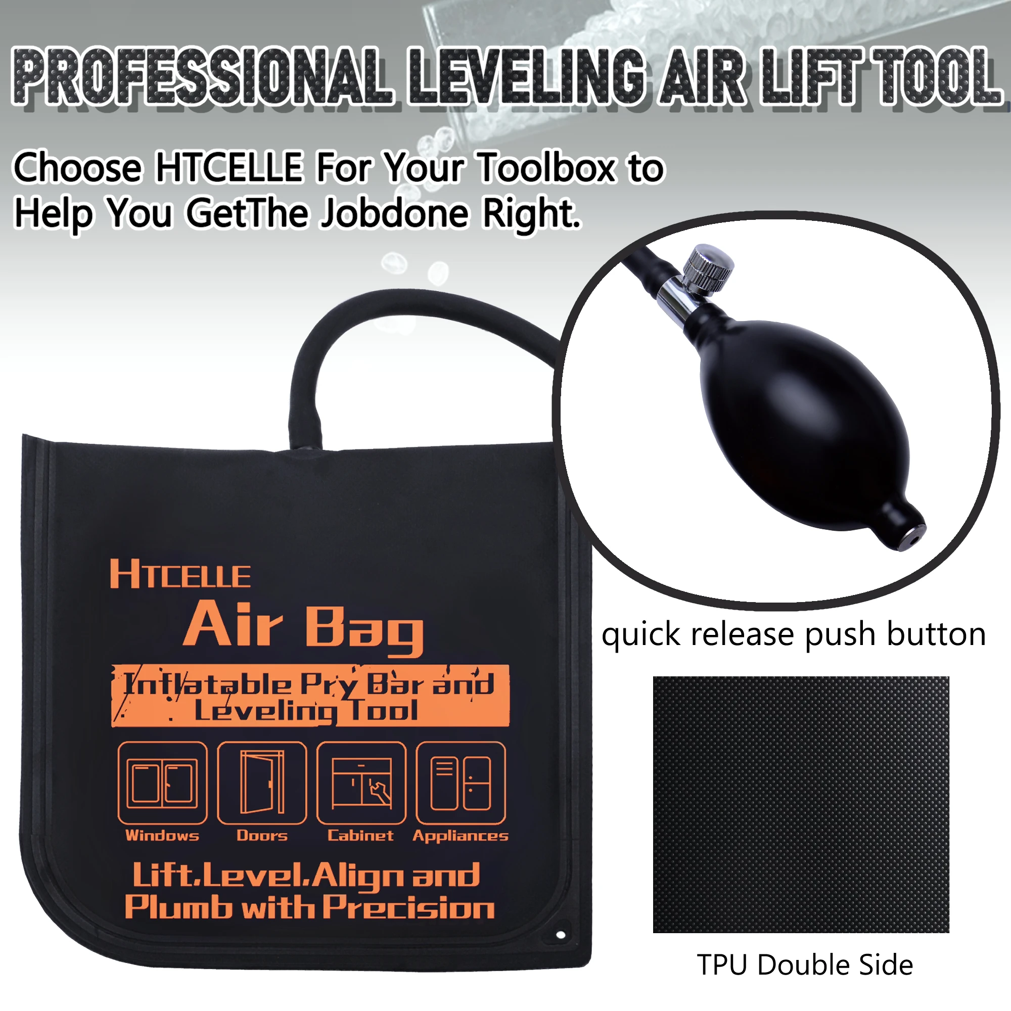 - Bright orange printed labels with clear typography and icons indicating usage instructions, accompanied by the product name “HTCELLE Air Bag,” provide quick identification and ease of operation.
