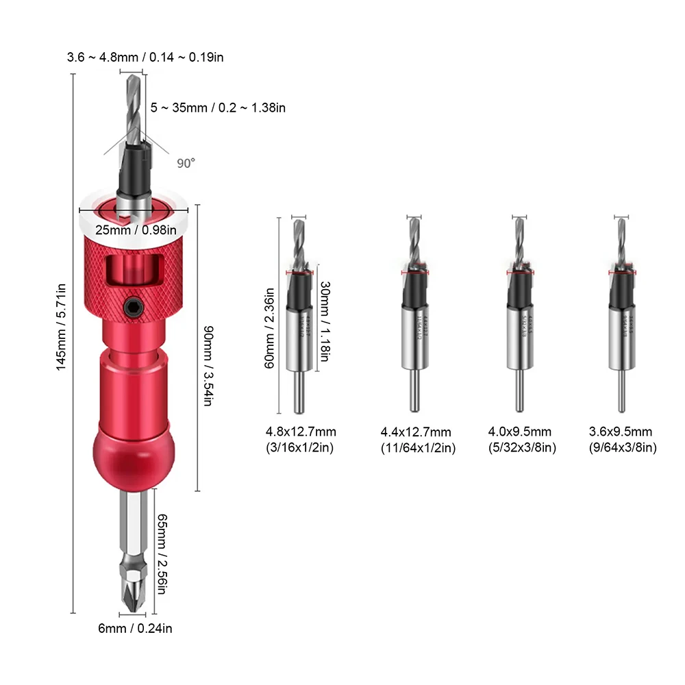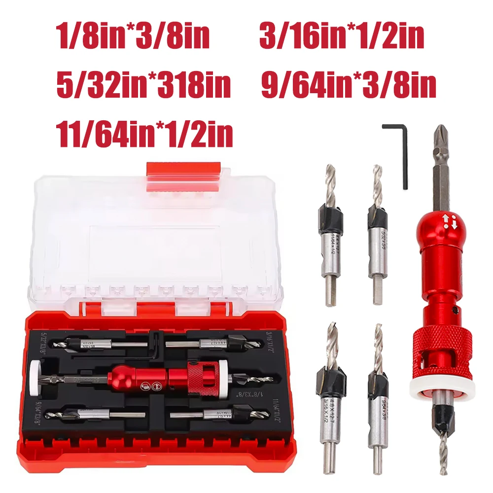 - Set includes five high-performance HSS countersink bits with tapered design for rapid, efficient cutting on various materials. Silver cutting edges ensure precision and durability.