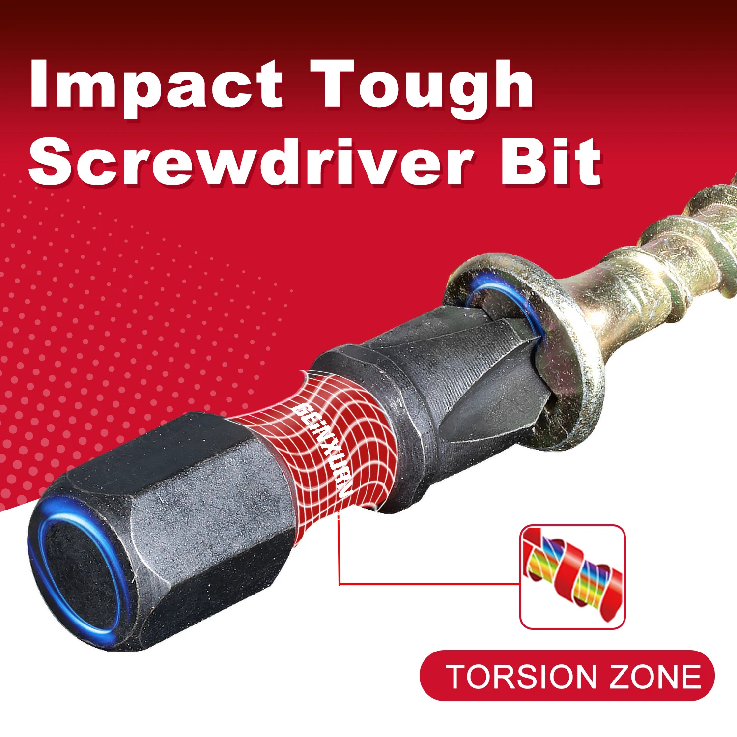 - Impact bit holder features a torsion zone, which effectively absorbs torque peaks, preventing breakage and prolonging the lifespan of your tools in demanding environments.