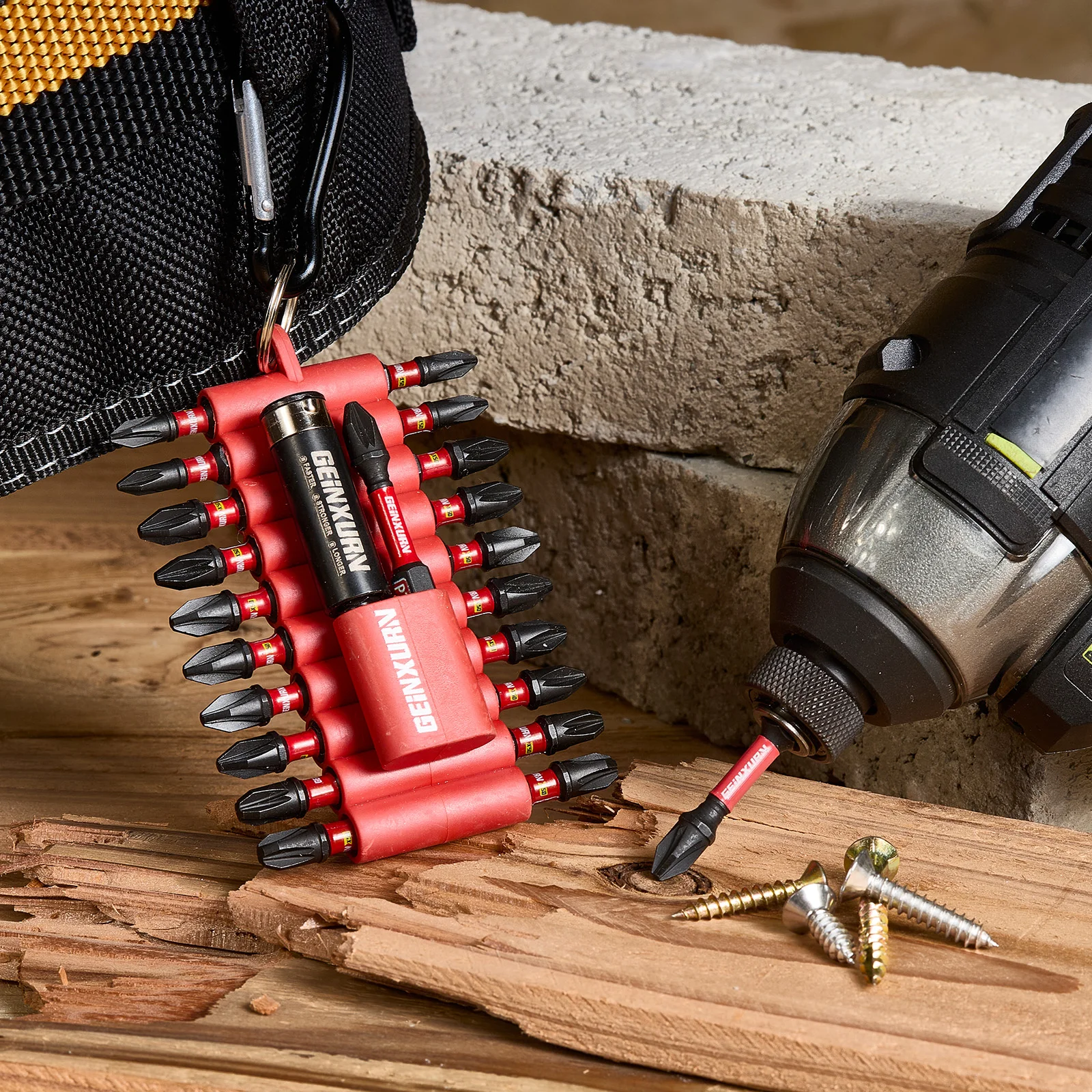 - Magnetized, dismountable screw heads in PZ1, PZ2, and PZ3 sizes, designed for precise engagement, easier handling, and reduced slipping during heavy impact driving.