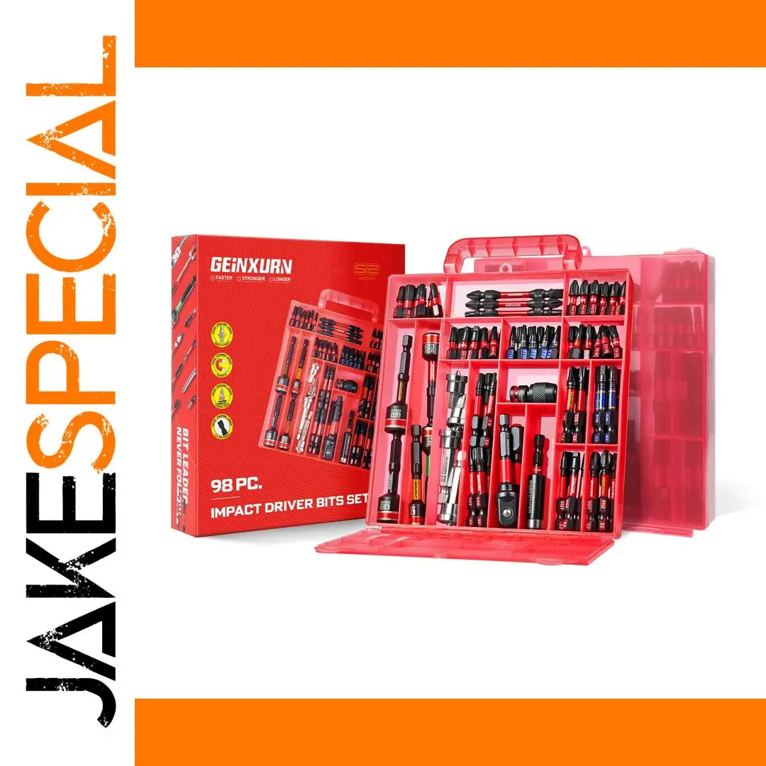 Step into the world of professional-grade tools with this impact screwdriver bit set. Designed for durability and precision, this 98-piece collection features sleek black alloy steel bits accented with vibrant red labels. The transparent red plastic case keeps everything organized in dedicated compartments, making it easy to access your tool at a moment’s notice. Perfect for various DIY projects, carpentry, or appliance repairs, this set offers versatility with multiple bit types and sizes. The magnetic tips and socket adapters ensure secure screw placement and reduce stripping. Its compact, ergonomic design makes it ideal for both professional craftsmen and home enthusiasts who value efficiency and reliability during demanding tasks.