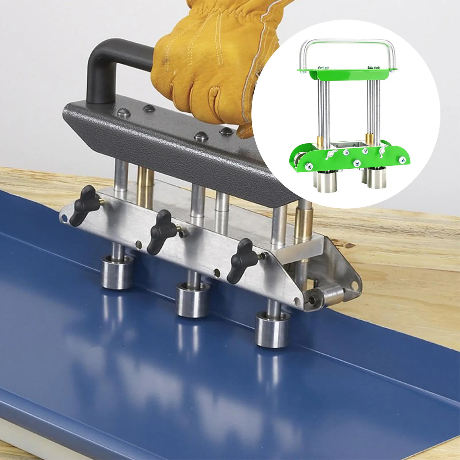 Designed for both DIY enthusiasts and professionals, the Edge Roller features a vibrant green frame with a sleek, curved design and polished aluminum handle for comfortable maneuvering. Made with high-speed steel rollers, it effortlessly bends metal plates from 0.01 to 0.04″ (0.3 to 1.0mm) at angles from 0 to 90 degrees, suitable for aluminum, copper, and steel. The ergonomic handle reduces fatigue during extended use, while the included 8-inch shear allows for precise metal cutting. Built for durability and precision, this professional-grade tool is ideal for fabricating metal roofing and achieving smooth, uniform bends with a stable finish.