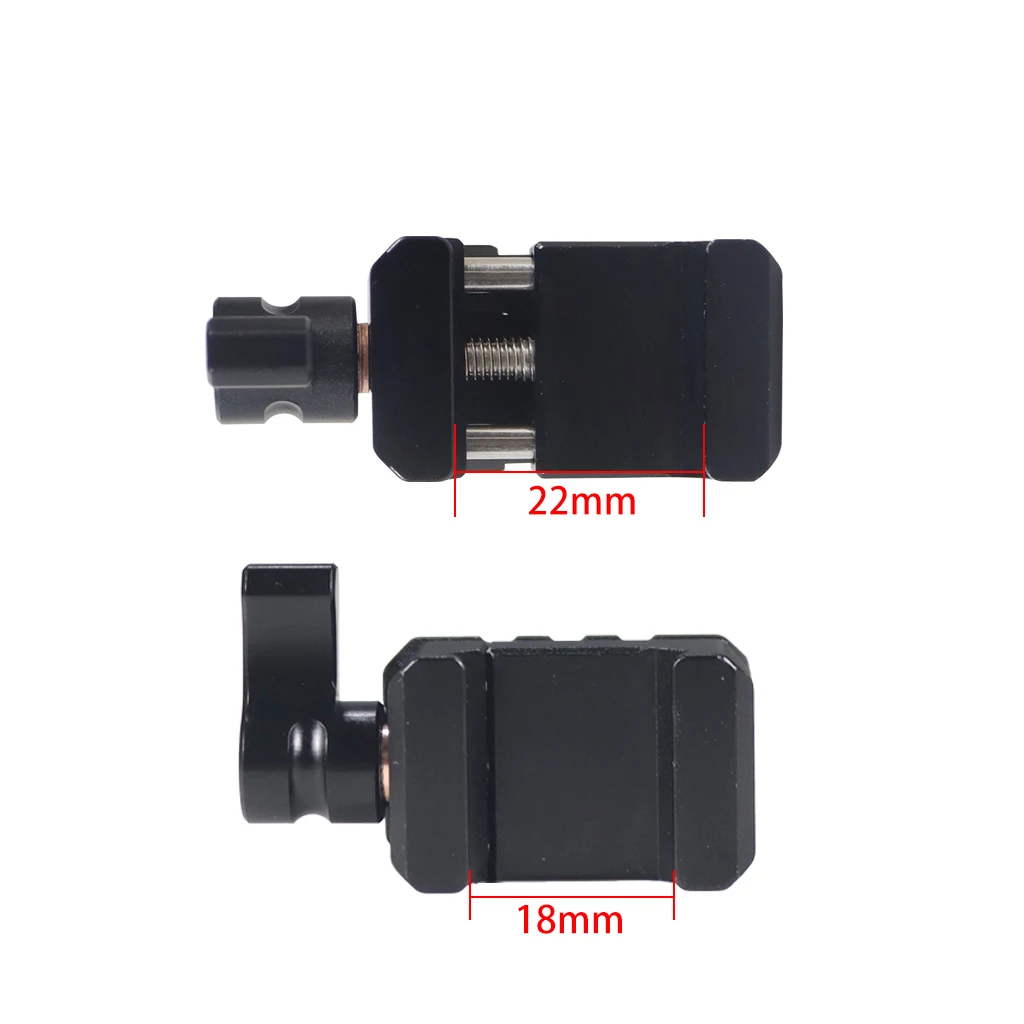 Enhance your gimbal setup with this versatile set of aluminum alloy quick release NATO rail clamps, available in three variants for optimal compatibility. The 21-25mm version features a chute design for rapid accessory switching, ideal for DJI Ronin RS2 and RSC2, supporting cold shoe monitor, microphone, and lighting attachments. The 18-22mm clamp is suitable for camera cages with threaded holes of 1/4″ and 3/8″. The lightweight 25g slider extension is CNC machined, anodized for durability, with a slot interface, knob lock, built-in spring for angle adjustments, and a large 20mm clamping distance. Designed for precision, durability, and professional rig customization.