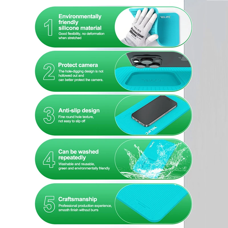 Imagine a professional-grade silicone pad that makes your mobile phone repair process more precise and hassle-free. This high-quality, anti-slip silicone pad in vibrant blue measures 228mm by 138mm, providing a stable workspace for applying and handling mobile phone films. Its matte, slightly textured surface ensures excellent grip, preventing slips and misalignments, while its flexible design allows it to stretch without deformation. Made from environmentally friendly silicone, this pad guarantees durability and professional performance. Whether you're a technician or a dedicated hobbyist, this pad helps you achieve smooth, flawless repairs, elevating your process with its sturdy, sleek design. Experience efficiency and confidence with this essential tool.