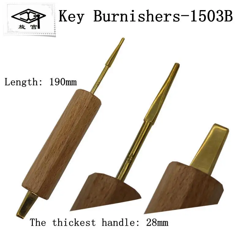Enhance your piano repair toolkit with this professional-grade key reamer, crafted from durable brass and cupronickel. Designed for enlarging and shaping lower key holes, it features models GQ1503, GQ1503A, and GQ1503B, available in distinct colors corresponding to each model. The slender, polished metal tips are ideal for precision work, while the ergonomic handles—one with a textured gold finish and the others in smooth light wood—provide comfortable grip and control. This high-quality tool ensures accurate enlargement of key holes, making it a trusted choice for technicians and skilled amateurs seeking reliable, long-lasting performance in piano repair projects.