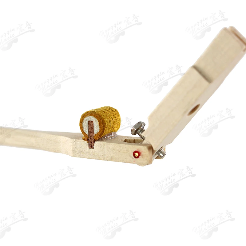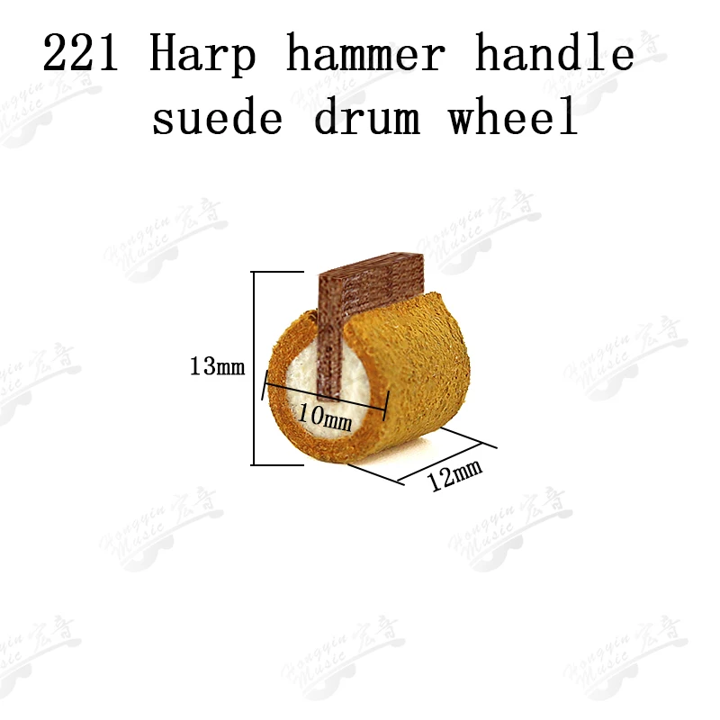 Experience the craftsmanship with this professional-grade harp hammer handle, meticulously designed for precise piano tuning and repair, especially for grand pianos. Made from durable brass and cupronickel, it features a sleek, slender handle crafted from polished, light-colored wood, ensuring a comfortable grip. Mounted on the handle are warm yellowish-brown suede drum wheel components, which provide soft contact points for delicate tuning adjustments. The handle's metallic components include a shiny brass or cupronickel pivot and secure fastening elements, combining strength with elegance. Ideal for professional pianists and technicians, this handle offers superior control, durability, and an aesthetic touch of sophistication, making your tuning process efficient and precise.