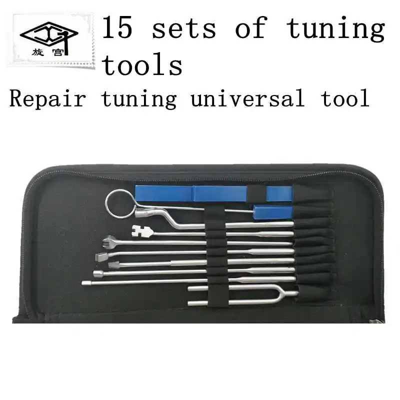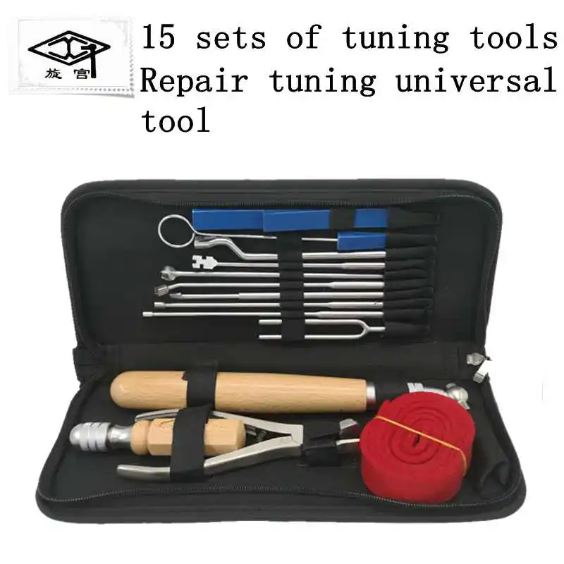 Imagine confidently tuning or repairing pianos with this comprehensive 15-piece set. Crafted for precision and durability, it features high-quality tools made from wood, metal, and rubber, ensuring reliable performance. The sleek, black fabric case with a refined matte finish keeps everything organized and easily accessible, making your work efficient. The set includes a tuning wrench, A440Hz round tuning fork, soundproof belts, and delicate leather forks for different piano sections—perfect for fine-tuning and maintenance. Whether you're a seasoned technician or a passionate enthusiast, this kit elevates your craft, bringing professional-grade equipment into your hands. It’s an excellent investment for ensuring sound perfection in every piano you work on.