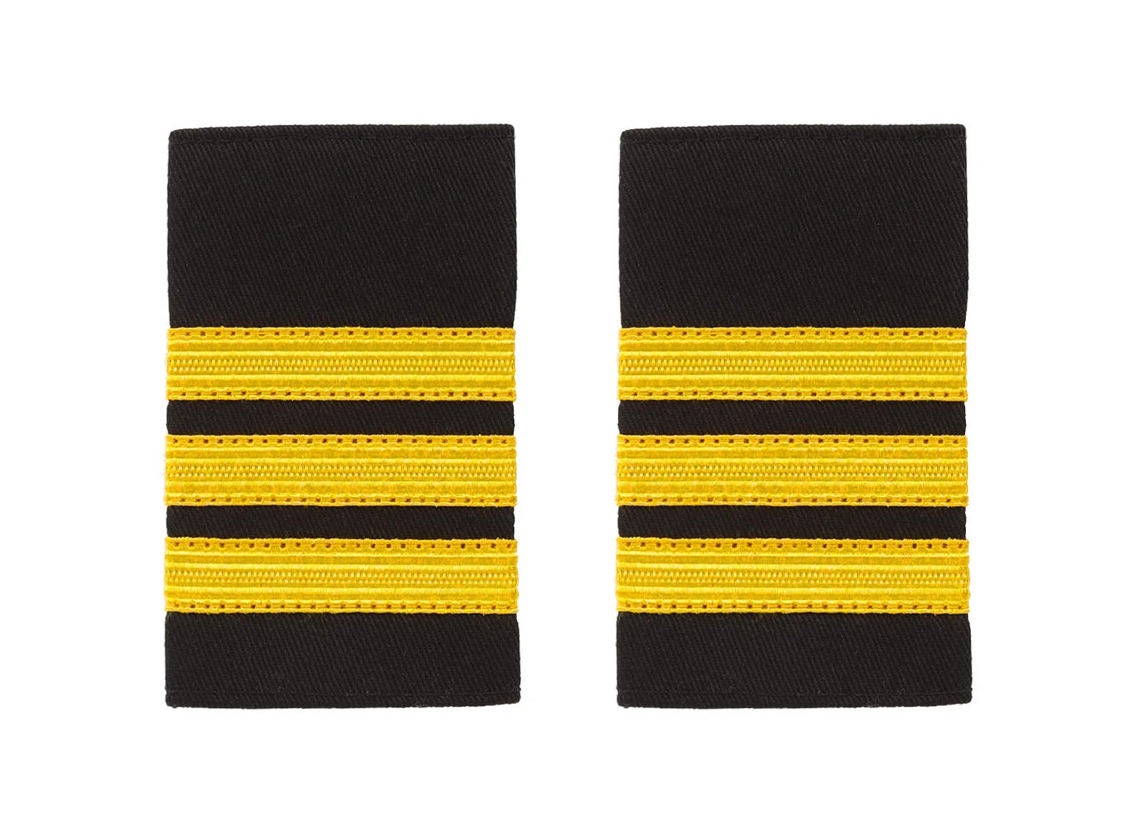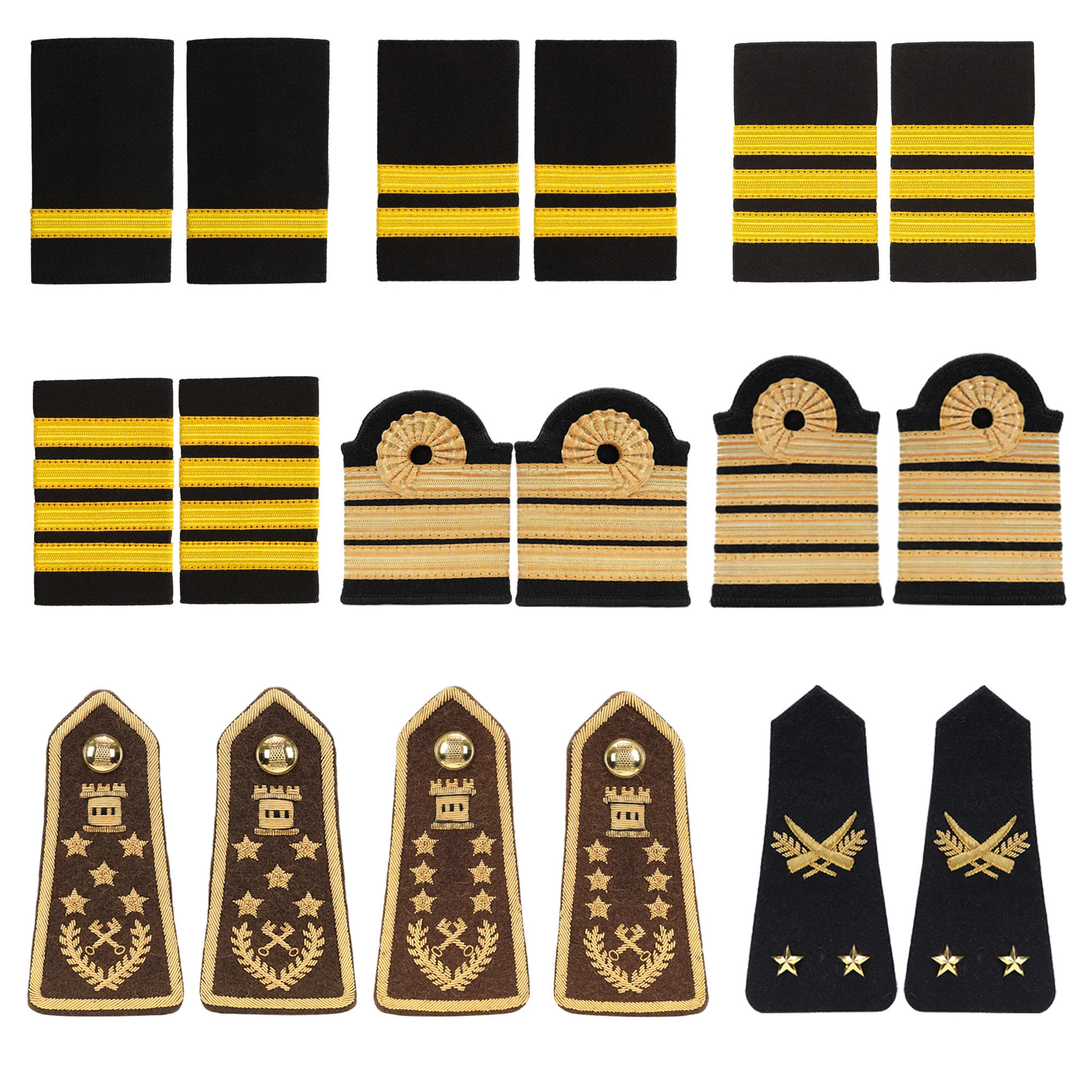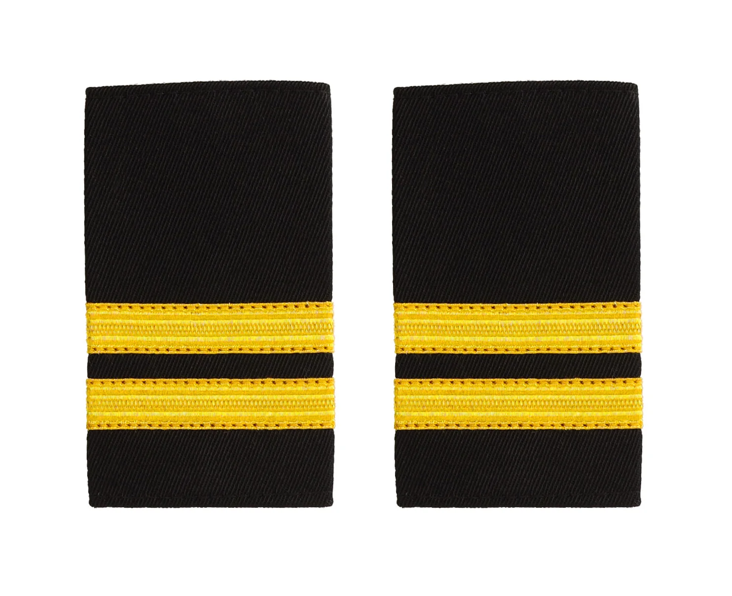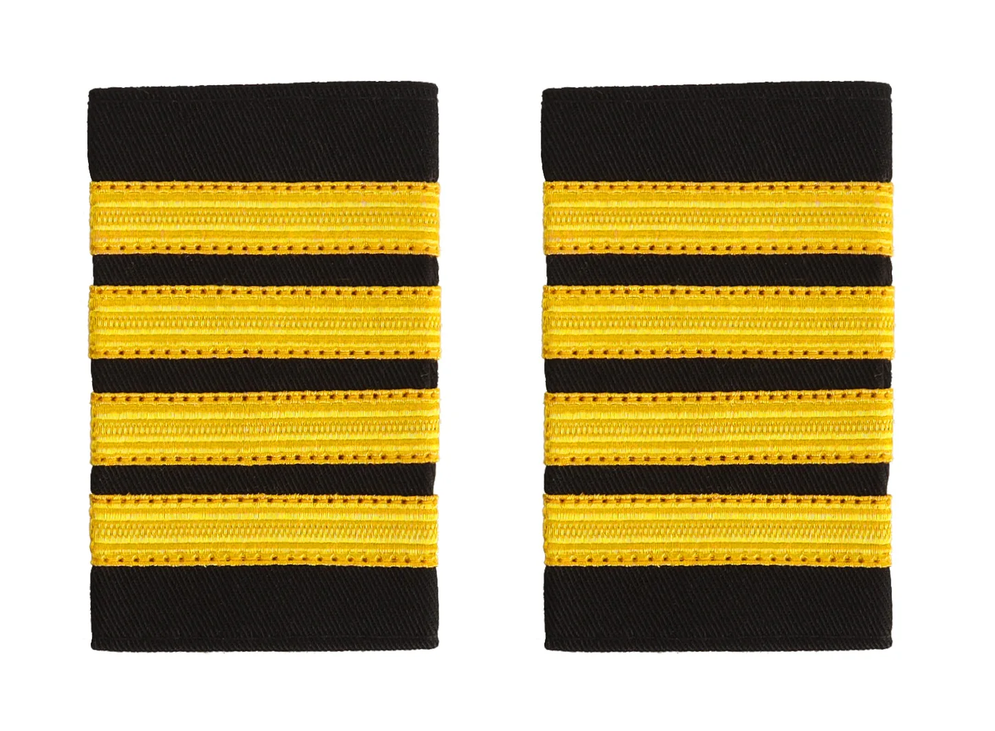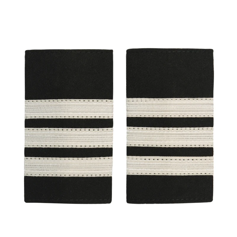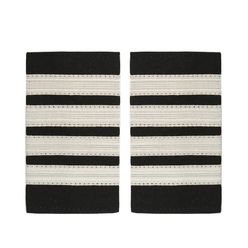 The Professional Pilot Epaulettes, model GS1600001, are crafted from high-quality polyester, making them ideal for airline captain uniforms. Predominantly black, these epaulettes feature striking stripes in yellow or gold, available in various configurations including 4 BAR, 3 BAR, 2 BAR, SILVER 1 BAR, 1 BAR, Silver 4 BAR, Silver 3 BAR, and SILVER 2 BAR. With design variations that include rectangular and rounded shapes, along with intricate embroidered details such as diamonds or anchors, these epaulettes embody both traditional and modern styles, perfectly suited for both men and women in the aviation industry.