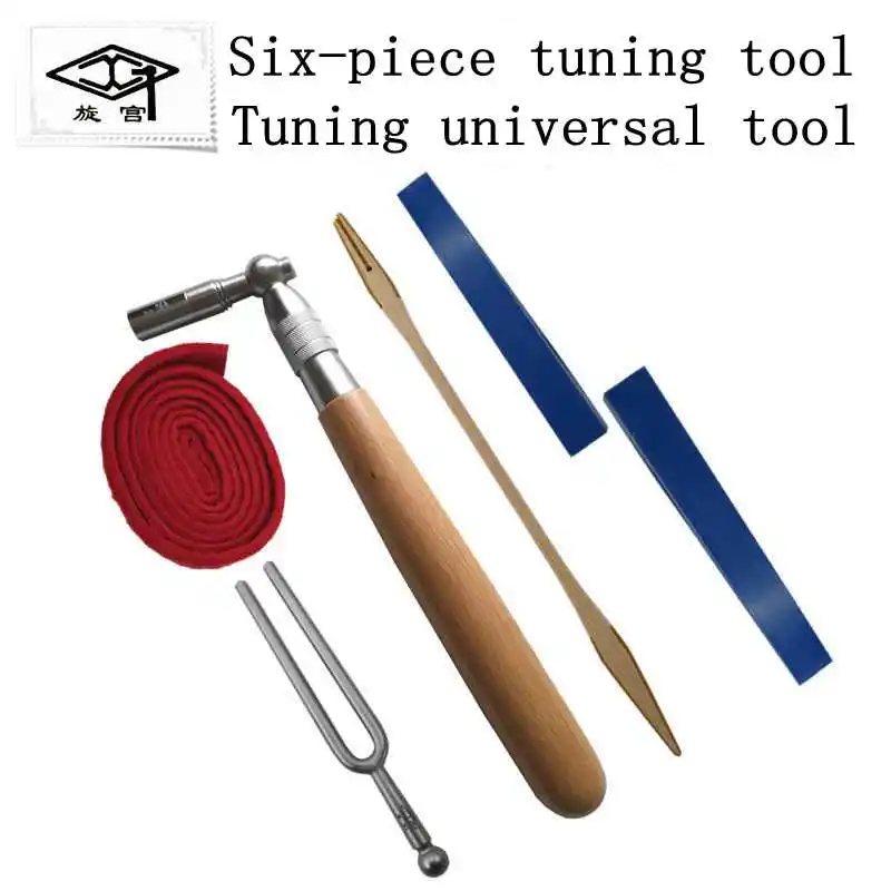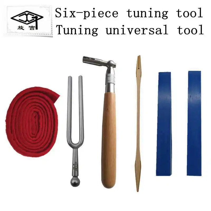 Imagine achieving perfect piano sound effortlessly with this professional six-piece tuning tool set. Featuring meticulously crafted components, it makes tuning precise and efficient. The set includes a tuning wrench with a smooth, light-colored wooden handle and a durable metal shaft, ensuring a comfortable grip during adjustments. The brass or cupronickel round tuning fork, calibrated at A440Hz, guarantees accurate pitch. A 4mm thick stop sound belt dampens vibrations for clarity, while a flexible rubber soundproof leather fork effectively isolates bass strings. The polished wooden sound bar is ideal for treble string tuning, and the toolkit completes your setup with essential adjustment tools. This sophisticated set streamlines the tuning process, providing high precision and reliability for professional or diligent enthusiasts.