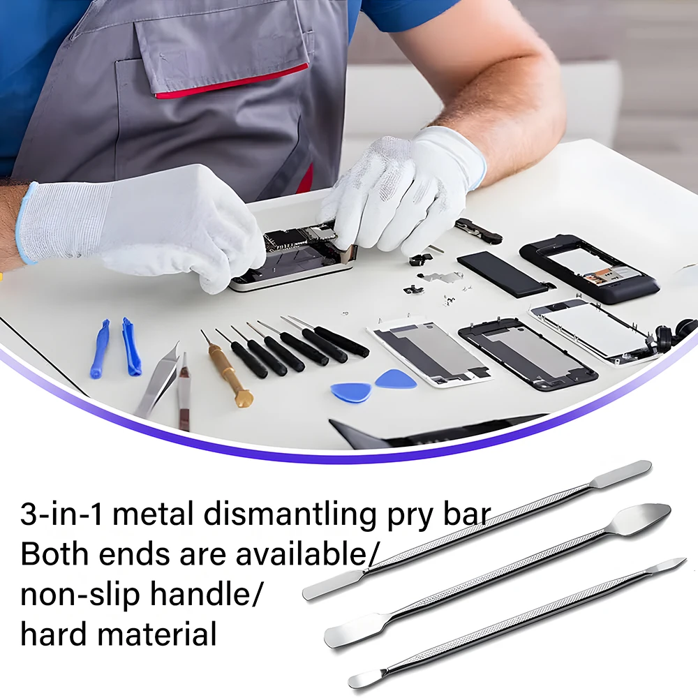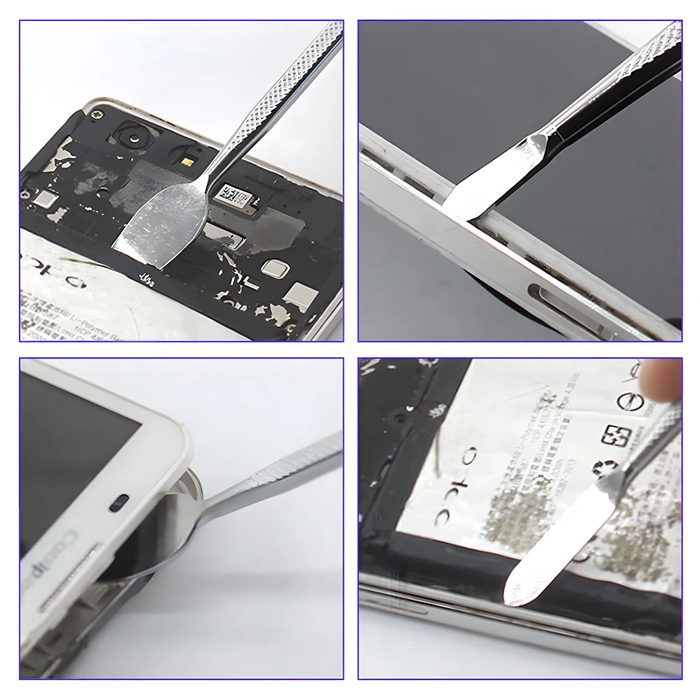 Enhance your electronic device repair toolkit with this durable stainless steel crowbar set, available in 165mm, 170mm, and 175mm lengths. The sleek silver finish and slim design ensure precision and ease of use for opening smartphones, laptops, and tablets. Whether you choose a single-piece or a three-piece set, these lightweight, reusable tools provide multiple types for various disassembly needs while minimizing potential damage. Designed without hazardous chemicals, they offer long-lasting performance for professional or DIY repairs. With a compact size of approximately 165mm to 175mm, these versatile tools are perfect for confident, safe, and efficient electronic device maintenance.