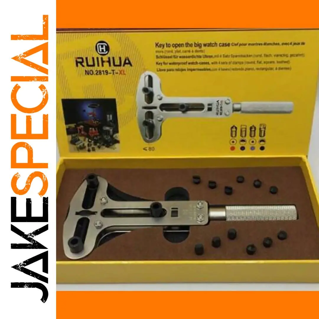 Step into the world of professional watch repair with this sleek, high-quality toolkit. Crafted from durable stainless steel, the adjustable wrench offers a smooth, polished surface with a textured knurled handle for a secure grip. Its versatile design accommodates cases up to 80mm in diameter, making it suitable for a wide range of waterproof watches. Included are 12 interchangeable black plastic clamps—round, flat, square, and toothed—that ensure a precise fit for different case backs. The compact set is neatly organized in a custom foam insert within a bright yellow storage case, providing both durability and ease of transport. Whether you’re a hobbyist or a professional, this set guarantees reliable performance in disassembly and assembly tasks, ensuring your watches stay in top condition.